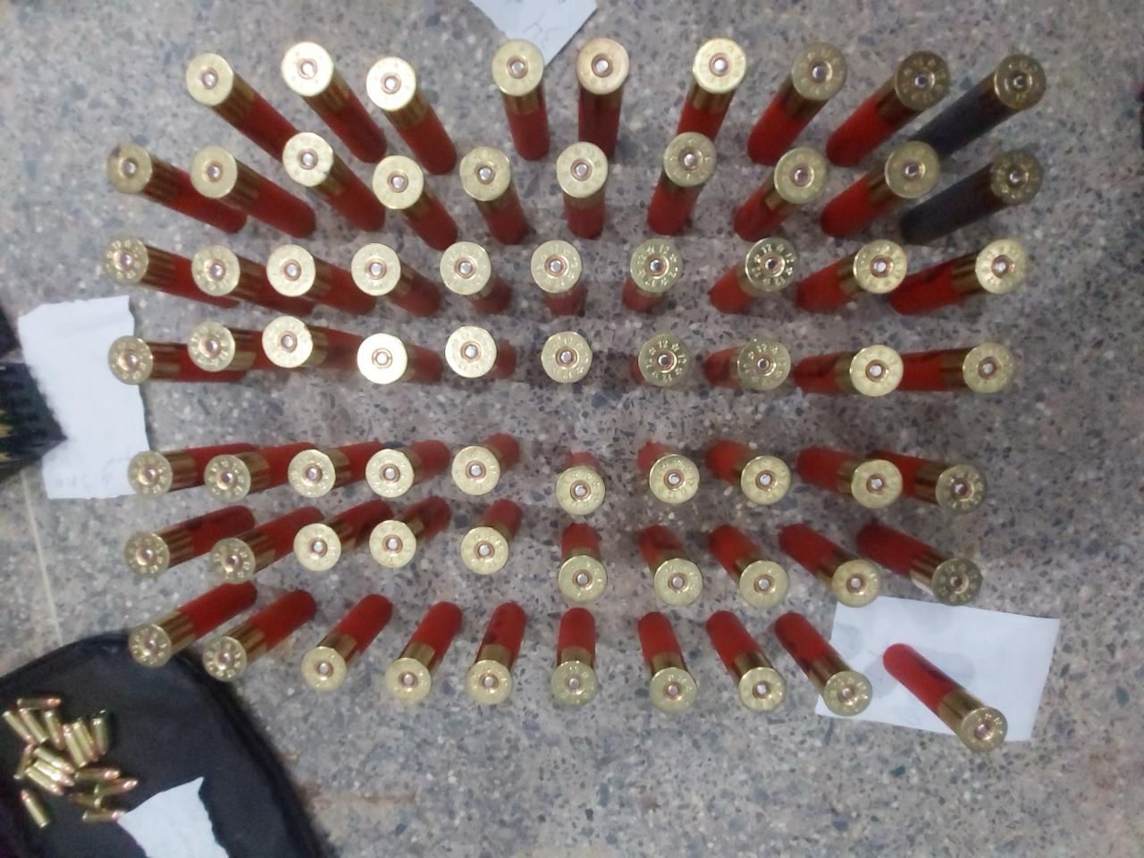 Diante da fundada suspeita, foi realizada uma revista veicular minuciosa, sendo localizados: uma espingarda calibre 12, marca CBC, modelo Pump Military (municiada); uma espingarda calibre 12, marca Mossberg; uma carabina calibre .38, marca Rossi, com acessório de luneta; uma pistola calibre 9mm, marca Taurus, com dois carregadores municiados; uma pistola modelo Glock G45, com dois carregadores municiados; uma pistola calibre 9mm, marca Masada, modelo Wantek, com dois carregadores municiados; 60 munições calibre 12, marca CBC; 50 munições calibre .38, marca CBC; 94 munições calibre 9mm, marca CBC, modelo Orgival Treine; 54 munições calibre 9mm expansivas; 34 munições calibre 9mm, marca CBC, modelo original; dois rádios comunicadores marca Motorola, modelo DP 450, de cor preta; e um coldre velado de KYDEX, cor bege, marca Combat Custom.