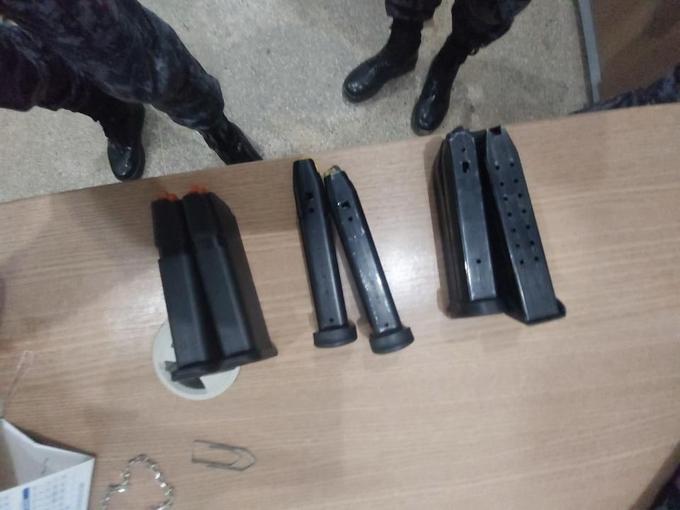 No entanto, durante a revista, foi localizada uma pistola no banco do motorista, no console central do veículo. Já o passageiro portava uma pistola na cintura, além de um carregador visível no bolso da calça, ambos municiados e prontos para uso.