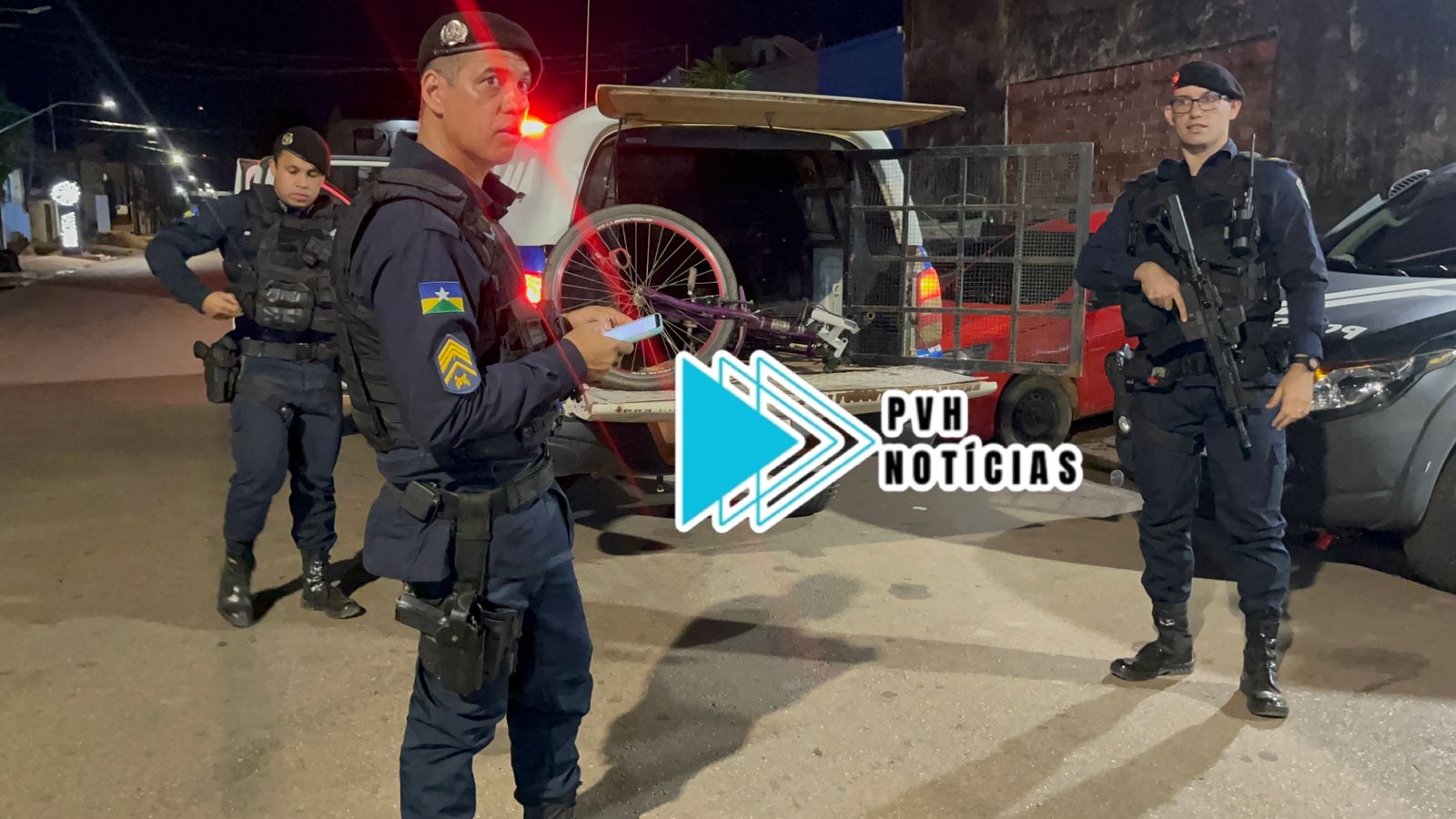 Uma guarnição do 1º Batalhão que fazia patrulhamento avistou o suspeito transitando de bicicleta, quando se aproximava de uma parada de ônibus, em seguida fizeram a abordagem.