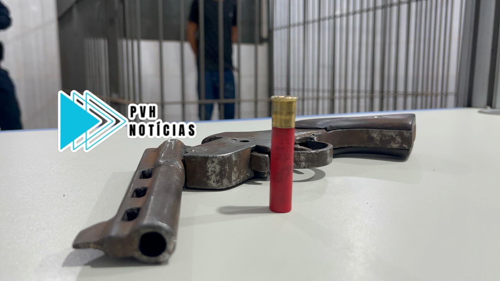 Na revista pessoal foi localizada uma arma de fabricação caseira com uma munição calibre 36 com ele.