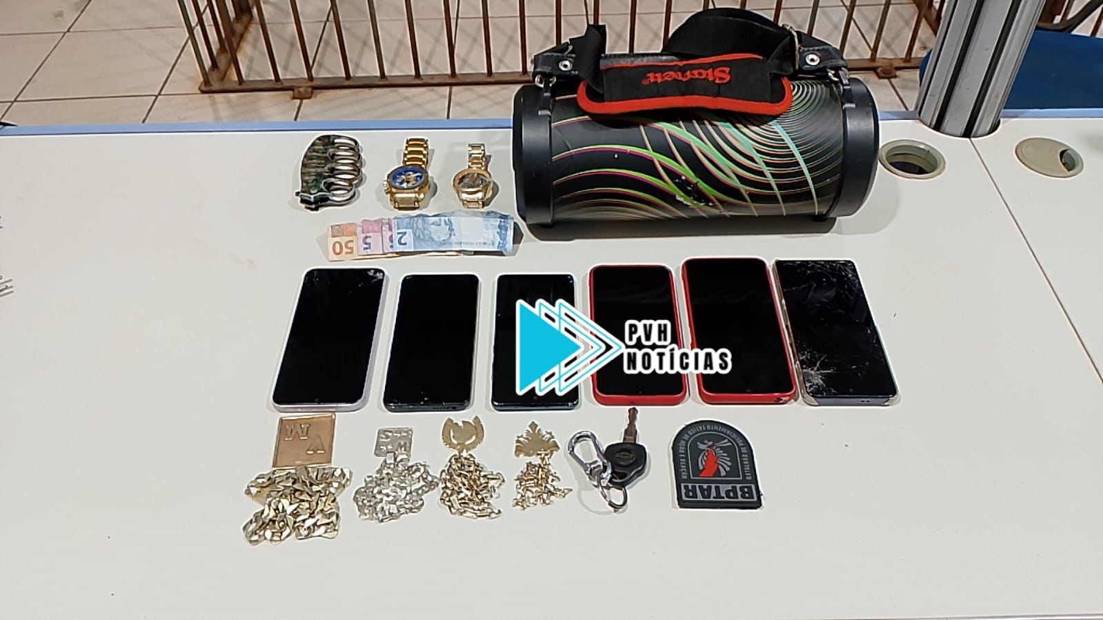 Durante as buscas os suspeitos foram localizados quando chegavam em um balneário no mesmo bairro. Após a abordagem foram encontrados os objetos roubados e o bando foi reconhecido pelas vítimas.