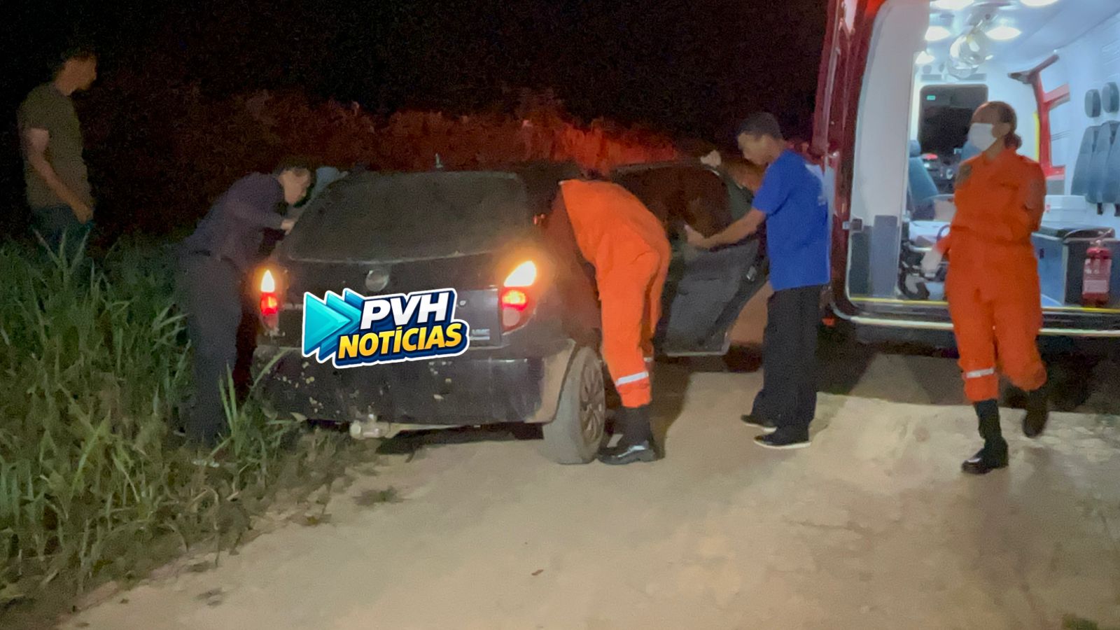 A vítima era socorrida em um carro particular, depois foi transferida para a ambulância do Corpo de Bombeiros