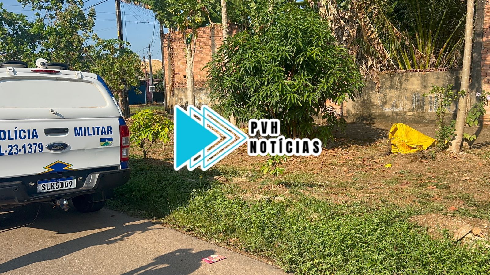 Populares que passavam pelo local e avistaram uma lona amarela cheia de sangue, notaram que havia uma pessoa morta e acionaram a PM que isolou o local.