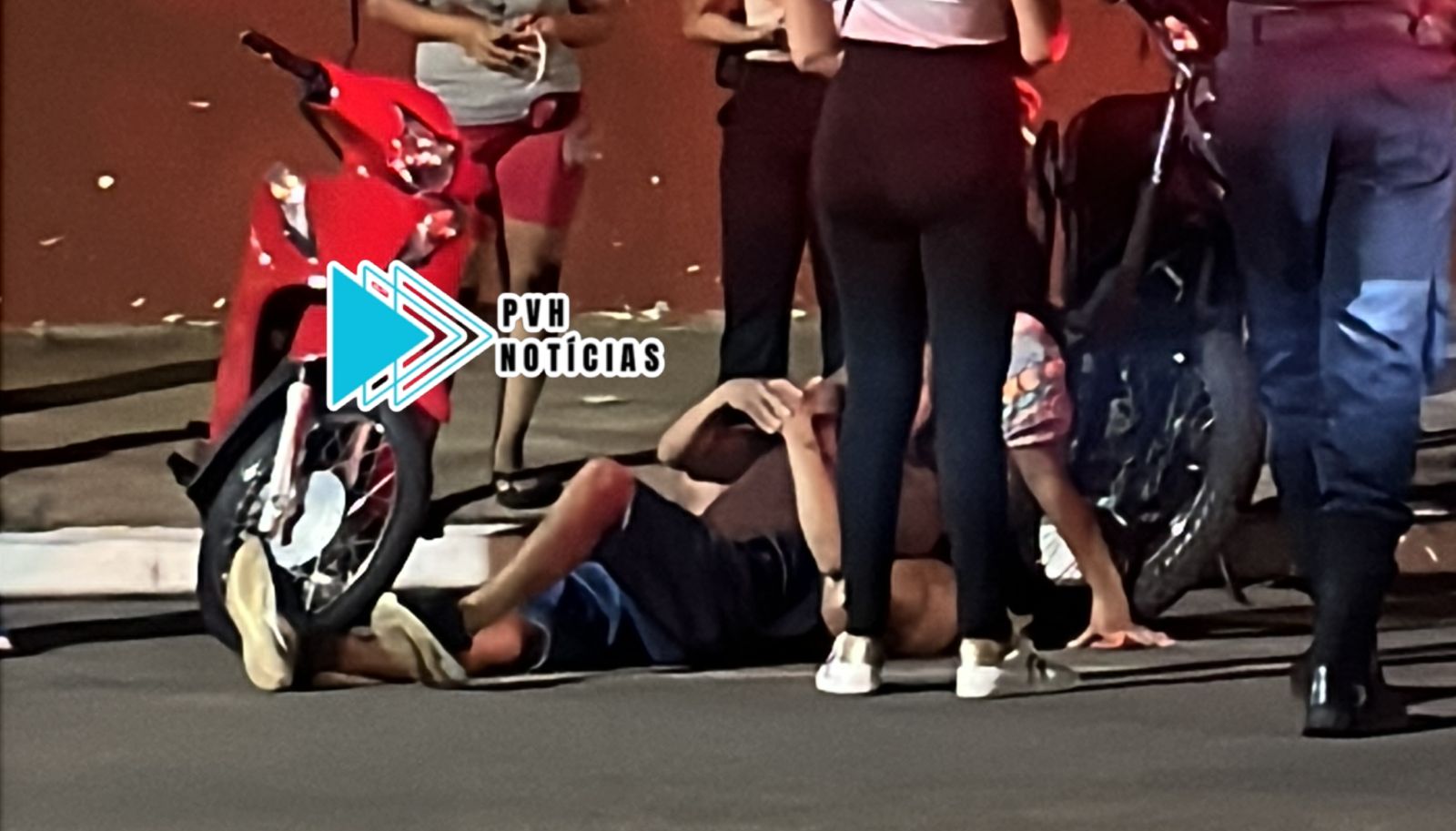 Um homem e uma mulher ficaram feridos na noite deste sábado (20), após queda de moto na Avenida Duque de Caxias entre Salgado Filho com Getúlio Vargas, centro de Porto Velho.