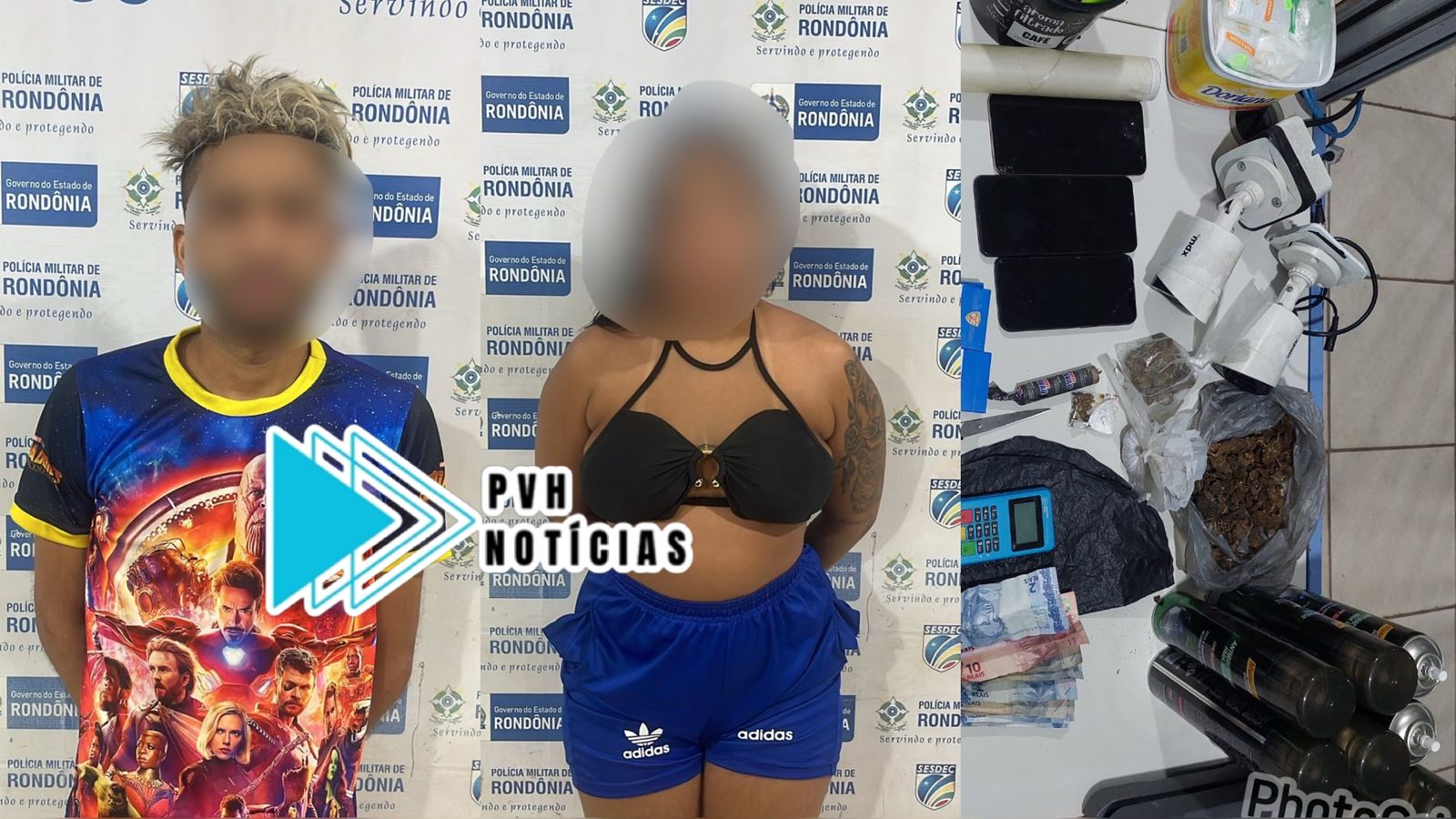 O casal Marcos M. R., vulgo “MK do CV” e R. S. G. S., foi preso por tráfico de drogas na noite desta quarta-feira (28), em uma residência na Rua Liberdade, bairro Três Marias, zona leste de Porto Velho.