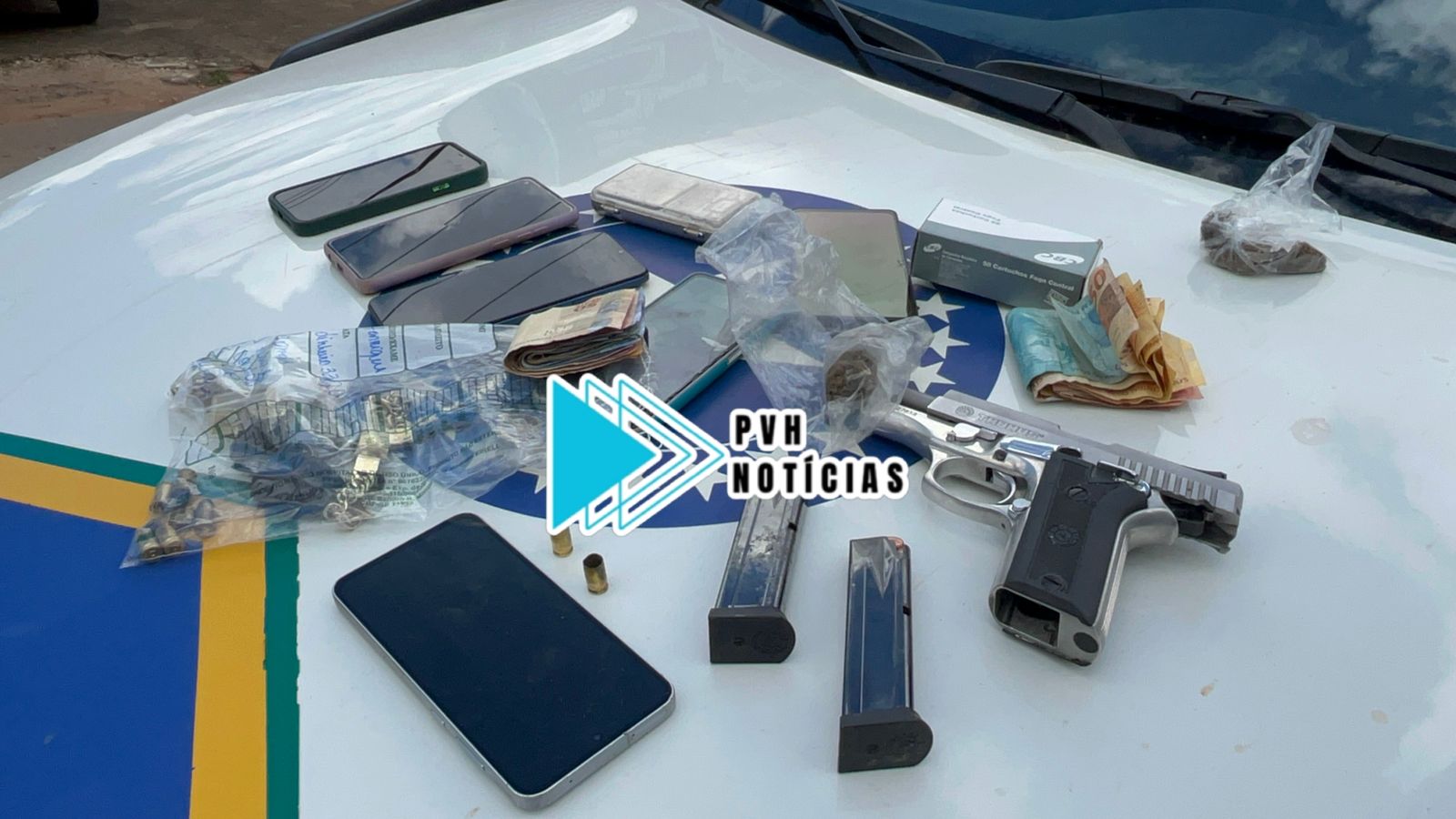 O adolescente passou as características do suspeito que foi encontrado na Rua Los Angeles, e depois de tentar fugir, foi preso com uma pistola calibre .380 com várias munições e objetos de procedência duvidosa.