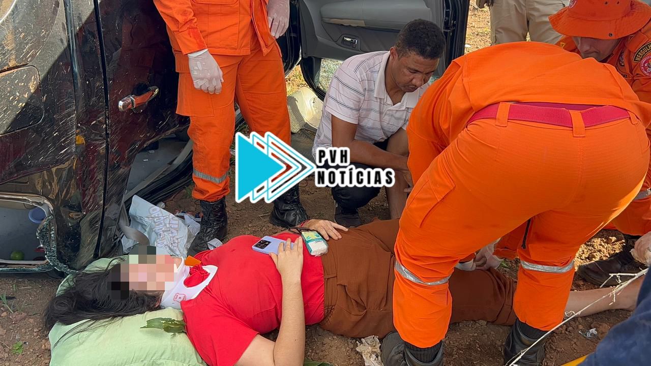 ATUALIZADA: Mãe e duas filhas ficam feridas em grave acidente com capotamento na BR-364