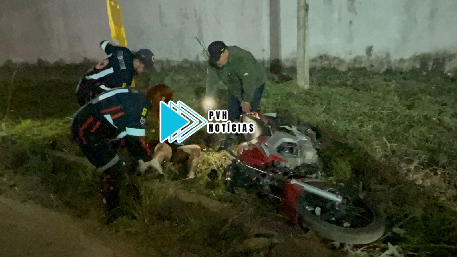 Uma jovem motociclista ficou gravemente ferida após sofrer uma queda na Rua Peroba, bairro Eldorado, zona sul da capital na noite desta quarta-feira (11).
