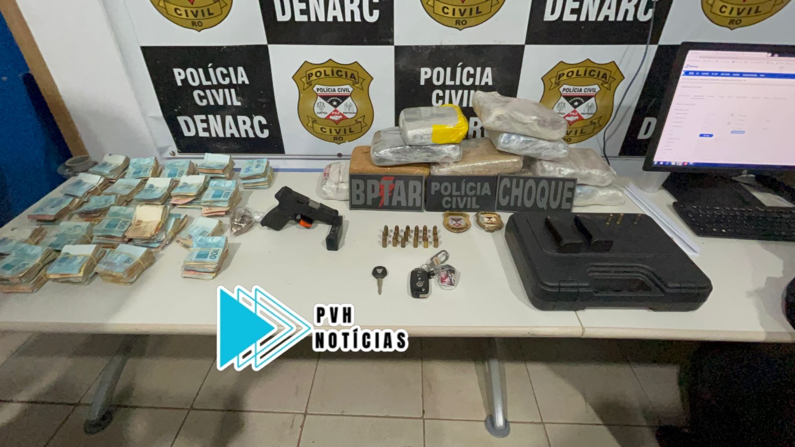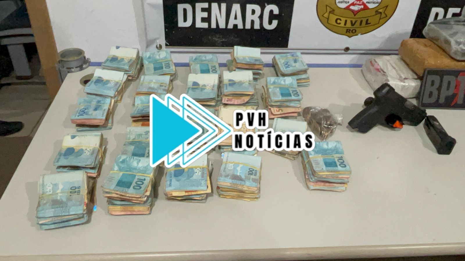 ATUALIZADA: Operação da Polícia Civil apreende R$165 mil reais, arma e drogas com traficantes em Porto Velho