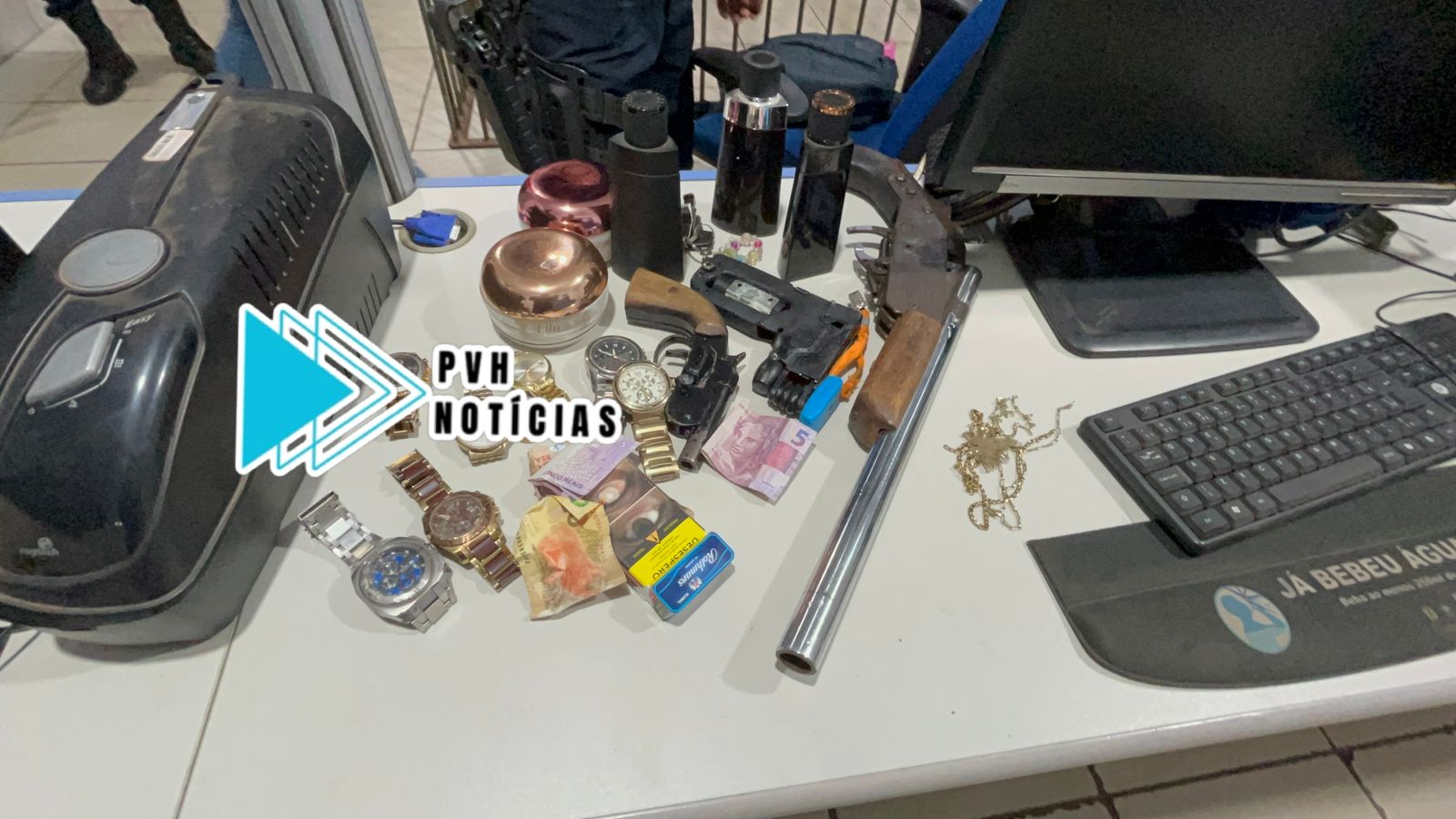Com ele foram encontradas duas armas e um simulacro, além de alguns dos objetos roubados das vítimas.