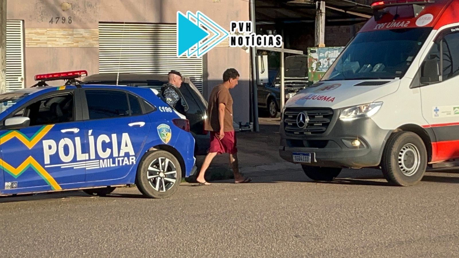 A PM foi chamada e fez q prisão do suspeito, enquanto o Samu foi solicitado para atendimento do ferido que foi levado para uma unidade médica.