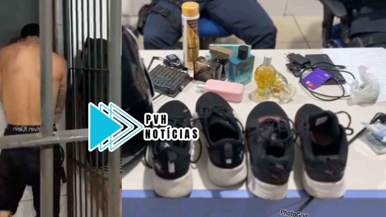 Após receber denúncias a PM conseguiu chegar até o suspeito que estava com a esposa em um apartamento no residencial Orgulho do Madeira, e com eles foram encontradas uma mala com vários objetos roubados, e uma porção de maconha.