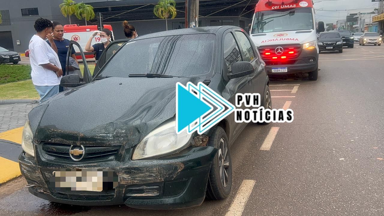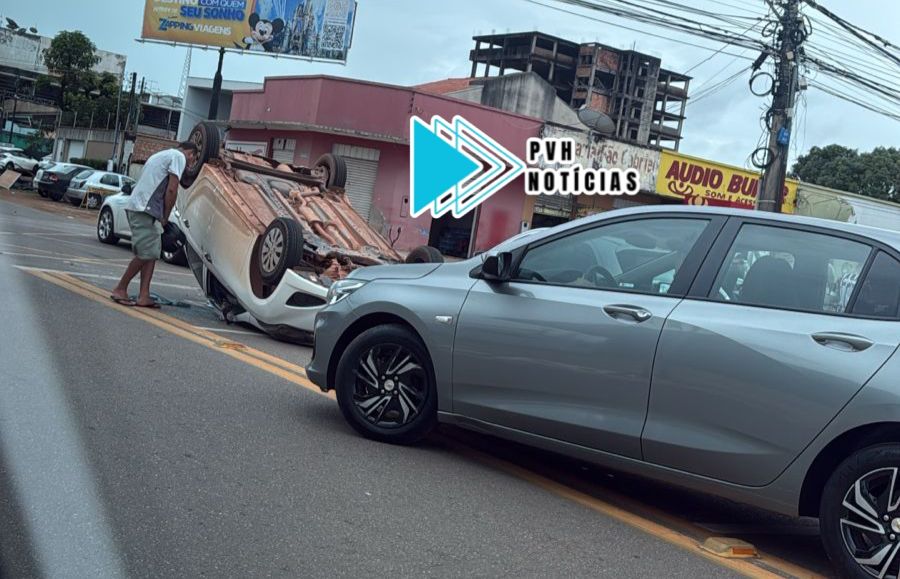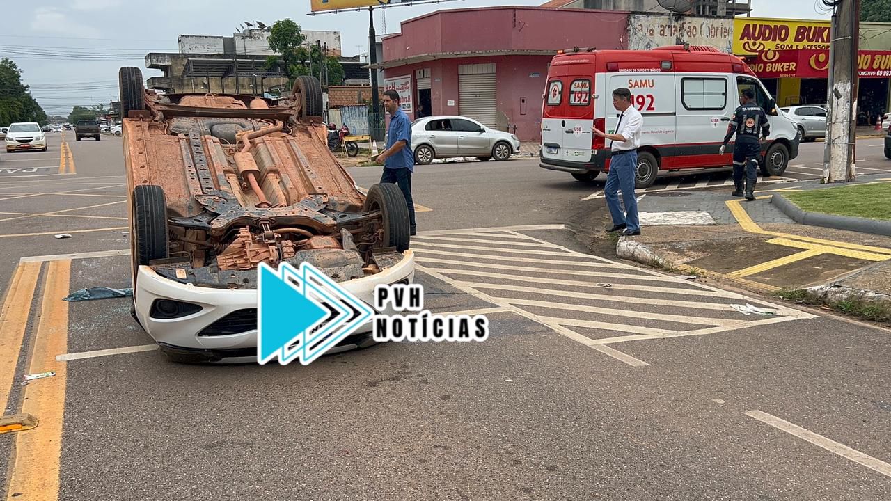 CAPOTAMENTO: Acidente deixa motorista de HB20 ferida no centro de Porto Velho