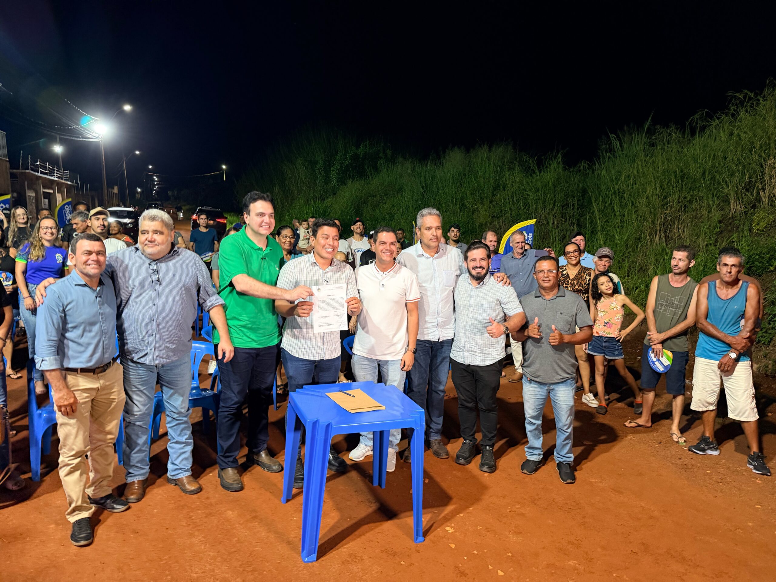 Autoridades, lideranças e moradores participam da assinatura da ordem de serviço (Foto: Italo Narovi)