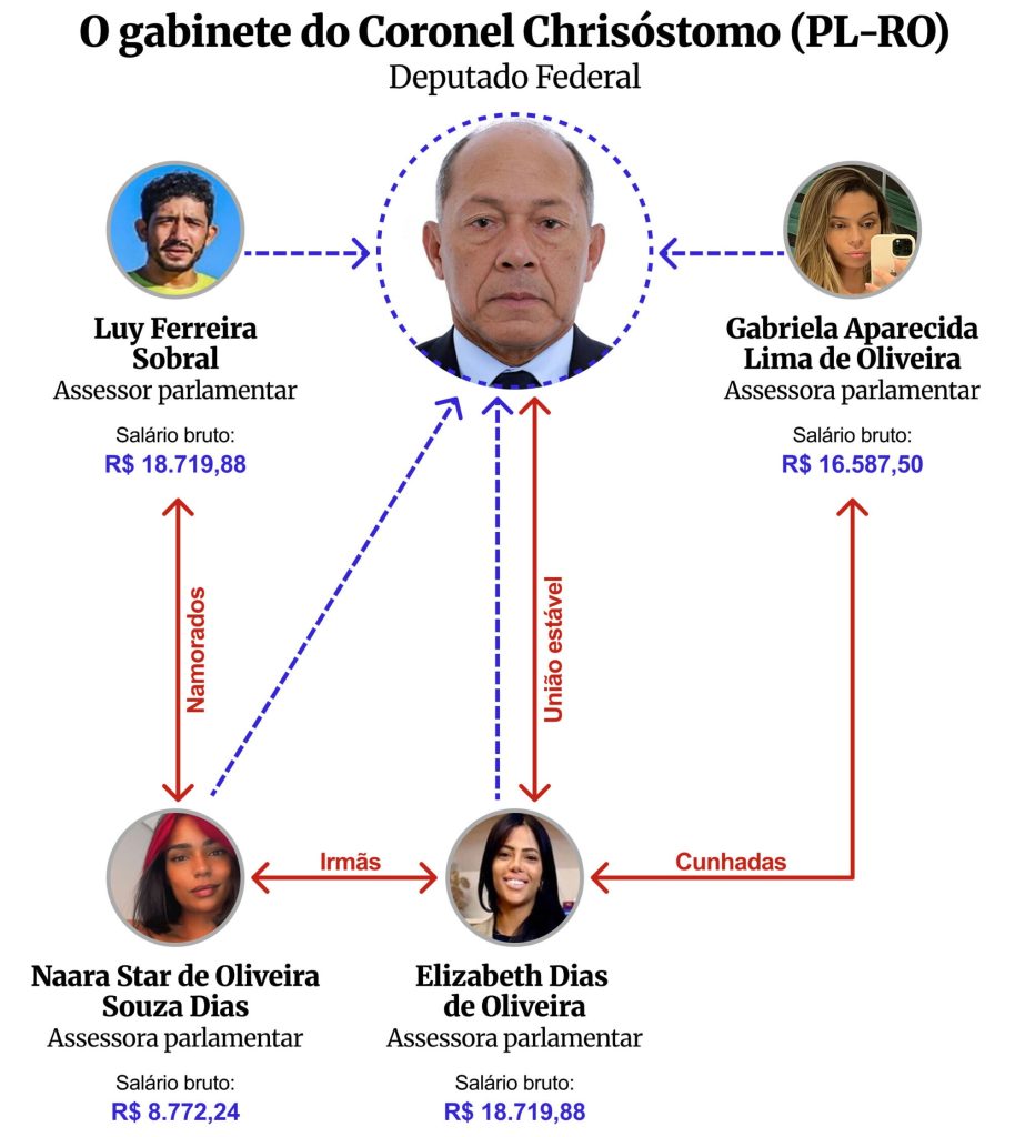 E o destaque da semana vai para o deputado federal Coronel Chrisóstomo (PL-RO), que aparentemente descobriu que administrar um gabinete é muito parecido com montar uma ceia de Natal: está todo mundo lá. A companheira, a cunhada, a outra cunhada, o concunhado, o namorado da cunhada… só faltou o papagaio e o sogro para compor a mesa.