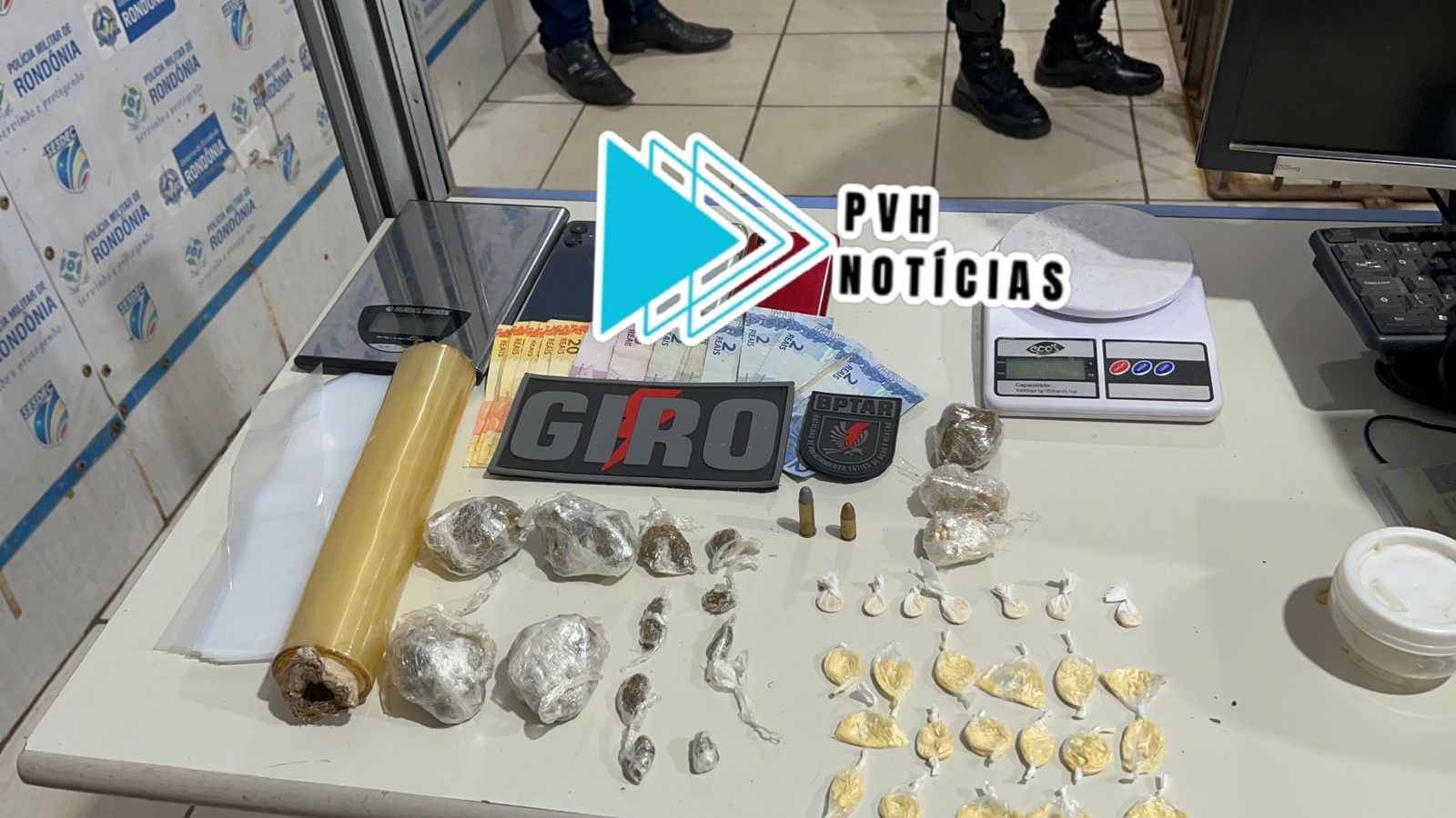 Em revista nos dois indivíduos e no estabelecimento comercial foram encontradas diversas porções de maconha, crack e cocaína, além de balanças de precisão, quase R$200 reais em dinheiro, material usado para embalar as drogas e duas munições calibre 38. Ambos foram encaminhados ao Departamento de Flagrantes.