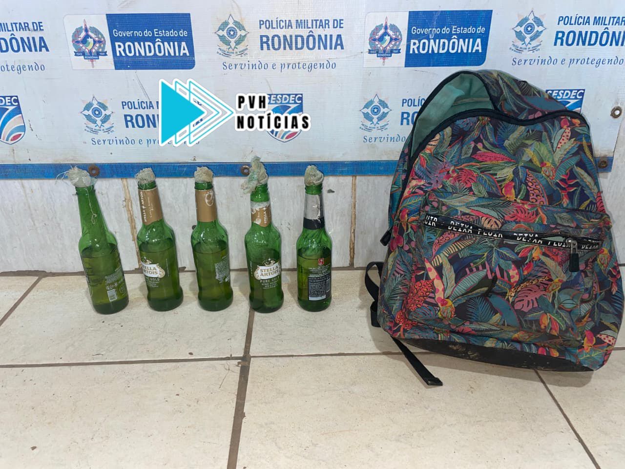 Segundo apurado pela PM, o jovem carregava uma mochila e uma garrafa de coquetel molotov na mão, quando iria jogar na fachada da empresa e foi detido por populares.
