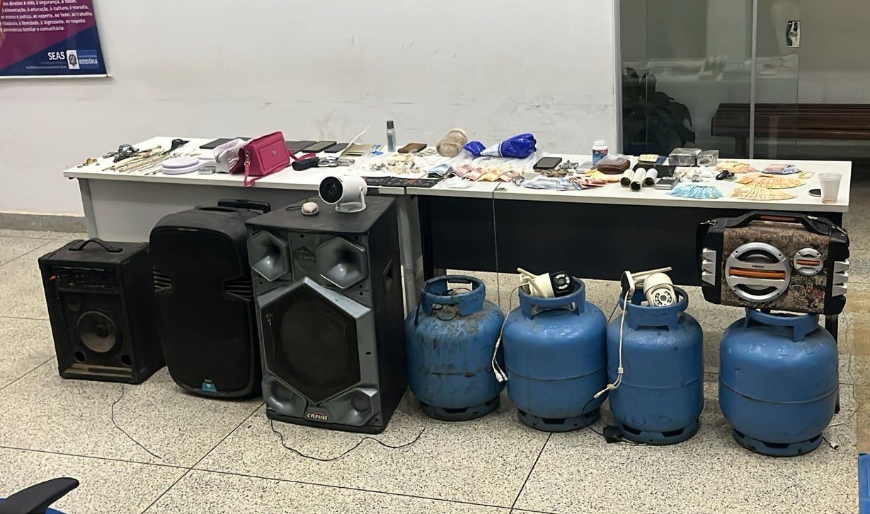 Também foram apreendidos celulares, equipamentos eletrônicos e objetos com suspeita de receptação.