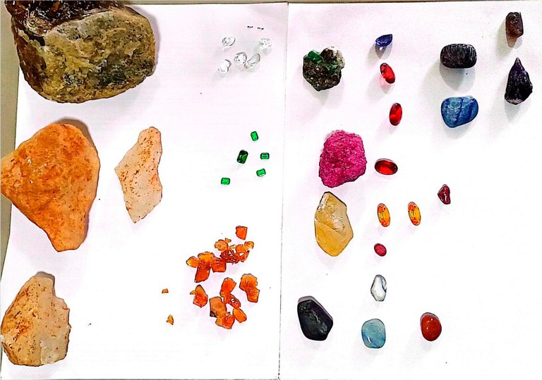 Aprofundaram-se as averiguações e foram localizadas dentro de um utensílio doméstico, mais 66 pedras: 03 Rubis vermelhos, 02 Rubis pequenos, 05 Ametistas, 05 Esmeraldas, 02 diamantes amarelo, 01 Pedra bruta Rubi roxa, 01 Tanzanita azul, 04 Turmalina ou rubelita rosa, 03 Safiras azuis, 25 Citrinos amarelos, 12 Pedras pequenas não identificadas, 04 Pedras grandes não identificadas.