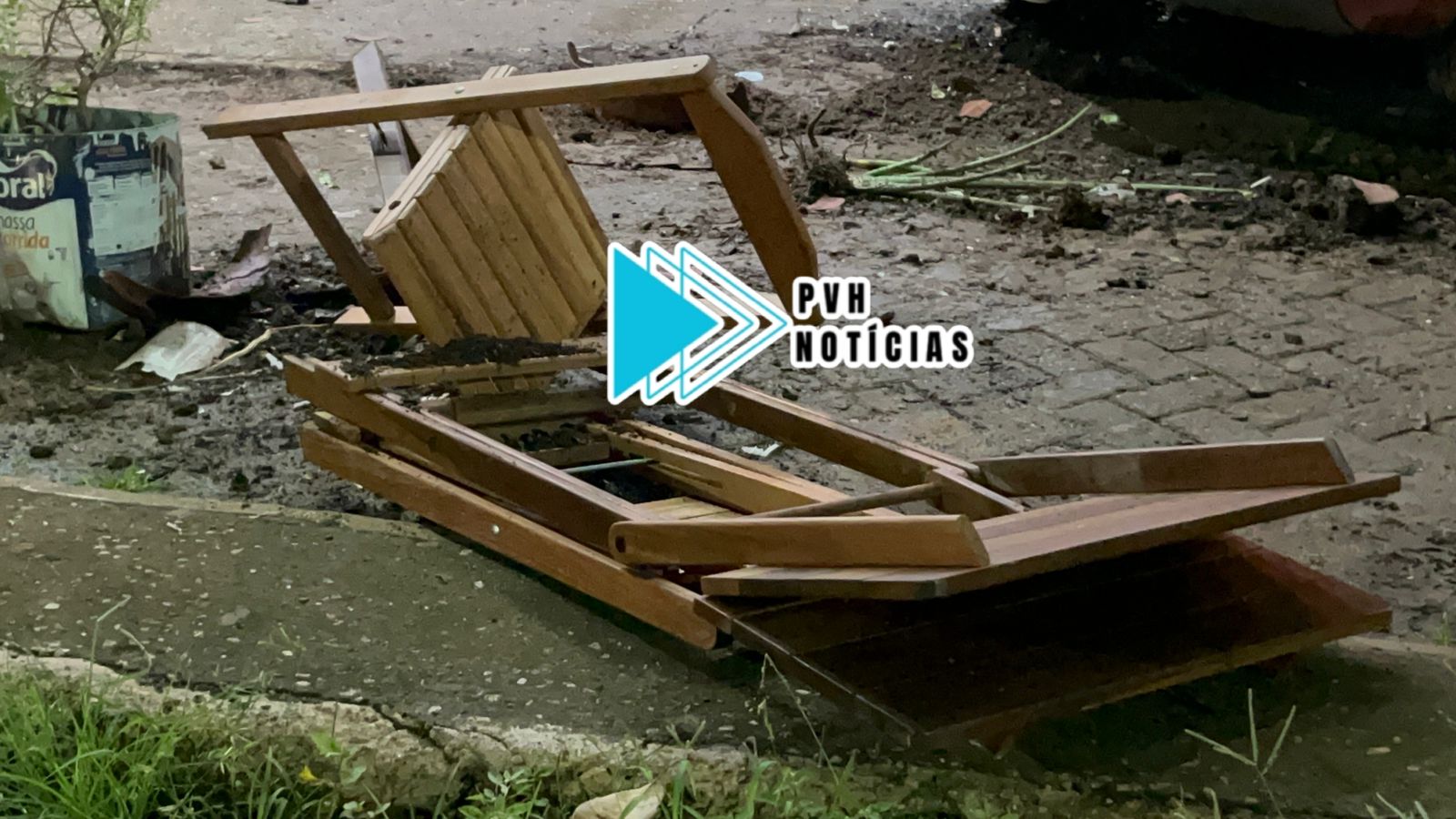 Um pedaço de madeira atingiu a perna de uma mulher que ficou ferida e foi socorrida para a UPA.