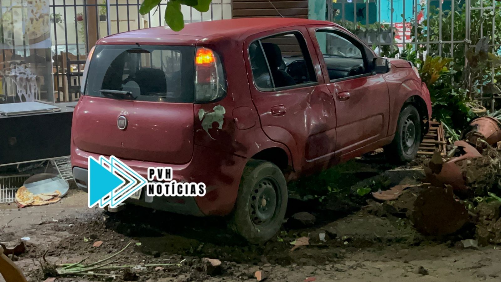 Testemunhas contaram que o veículo modelo Fiat Uno saiu da Rua Moisés Carvalho em seguida invadiu a pista contrária da Mamoré, subiu a calçada de uma pizzaria.