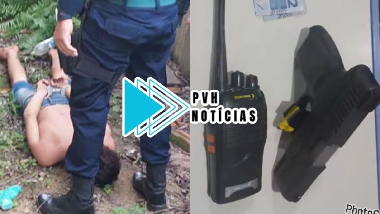 Com ele foi encontrada uma pistola calibre 9mm embrulhada em uma sacola plástica, e na casa por onde fugiram, várias porções de drogas e objetos de procedência duvidosa. O infrator teria confessado a prática de tráfico de entorpecentes no local.