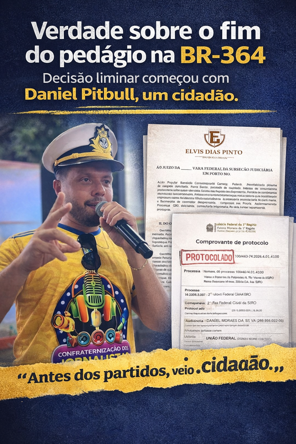 A gênese da contestação ao pedágio da BR-364 está registrada nos autos judiciais e na mobilização popular iniciada por Daniel Pitbull, um cidadão que decidiu agir quando o silêncio ainda predominava entre lideranças políticas e setores organizados.
