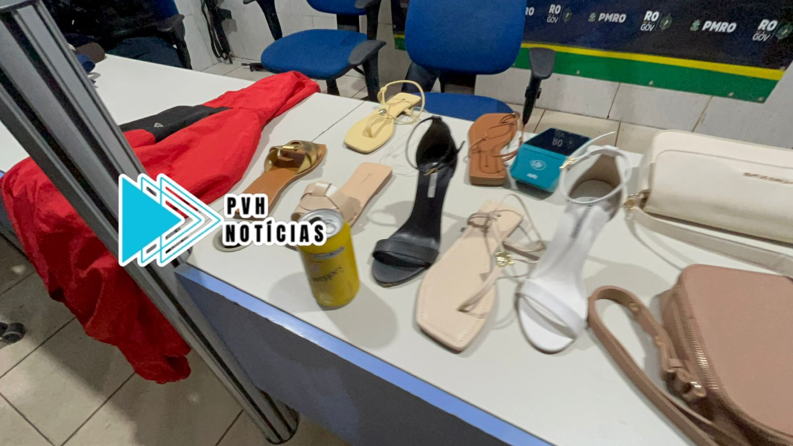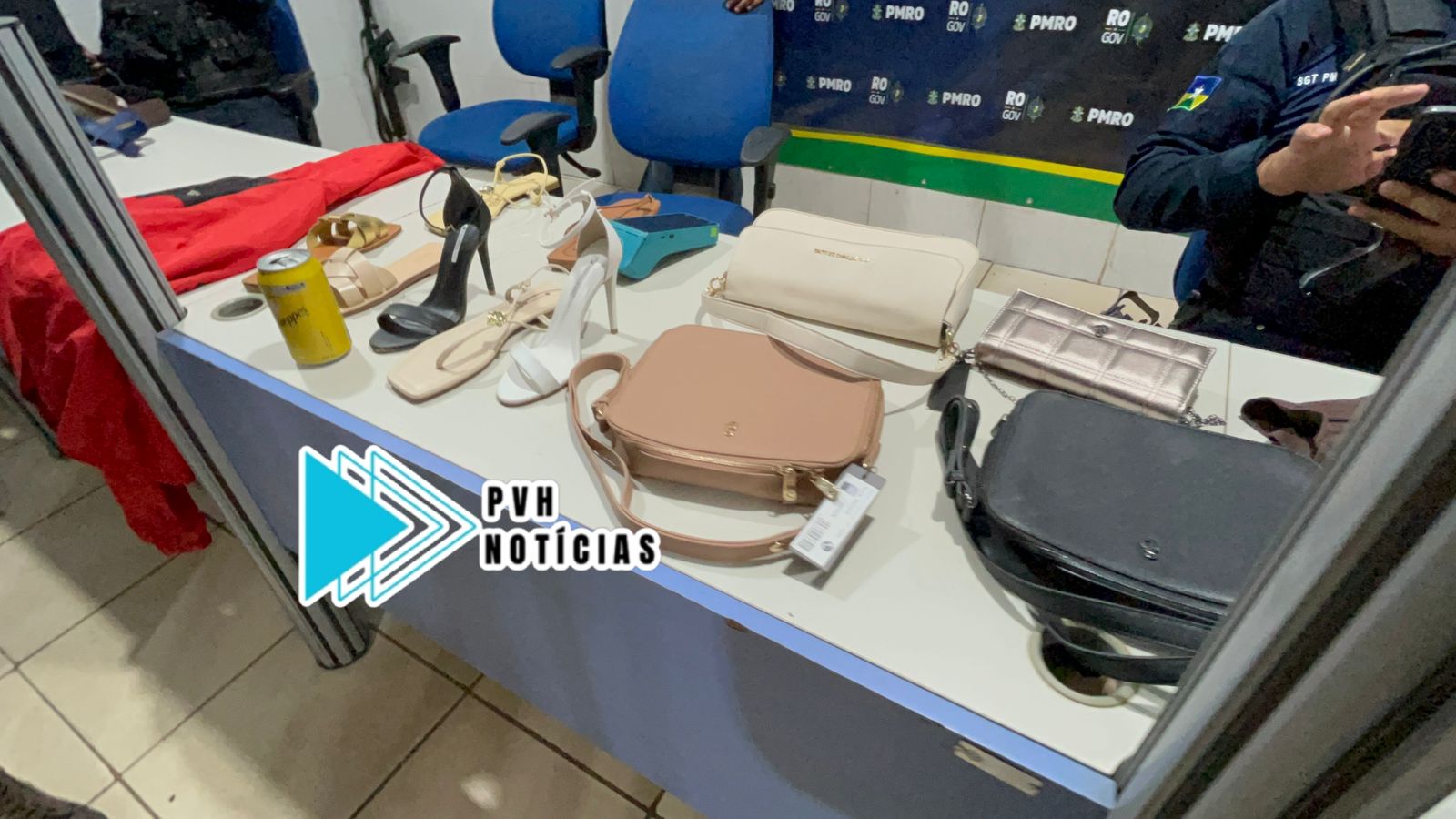 Com eles foram encontrados alguns pares de sapatos, camisas, máquina de cartão, e bolsas, furtadas do estabelecimento comercial.