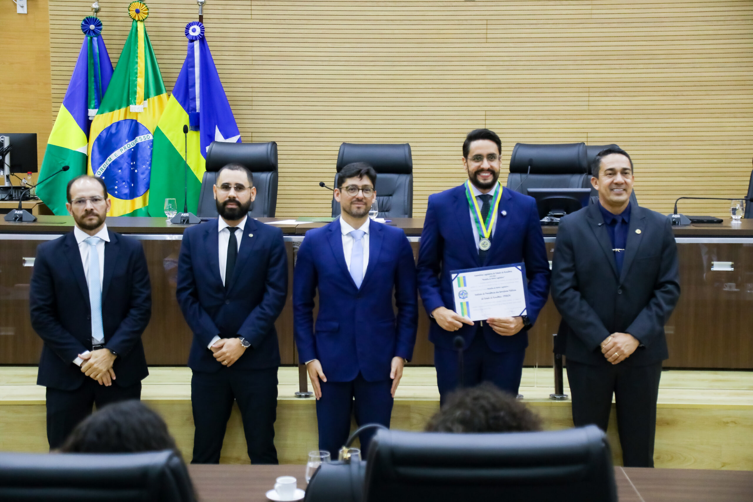 O deputado estadual Eyder Brasil (PL) concedeu ao Instituto de Previdência dos Servidores Públicos do Estado de Rondônia (Iperon) a Medalha do Mérito Legislativo, em solenidade no plenário da Assembleia Legislativa, em Porto Velho. A homenagem reconhece os avanços e a atuação estratégica do órgão na garantia da segurança previdenciária do funcionalismo estadual.