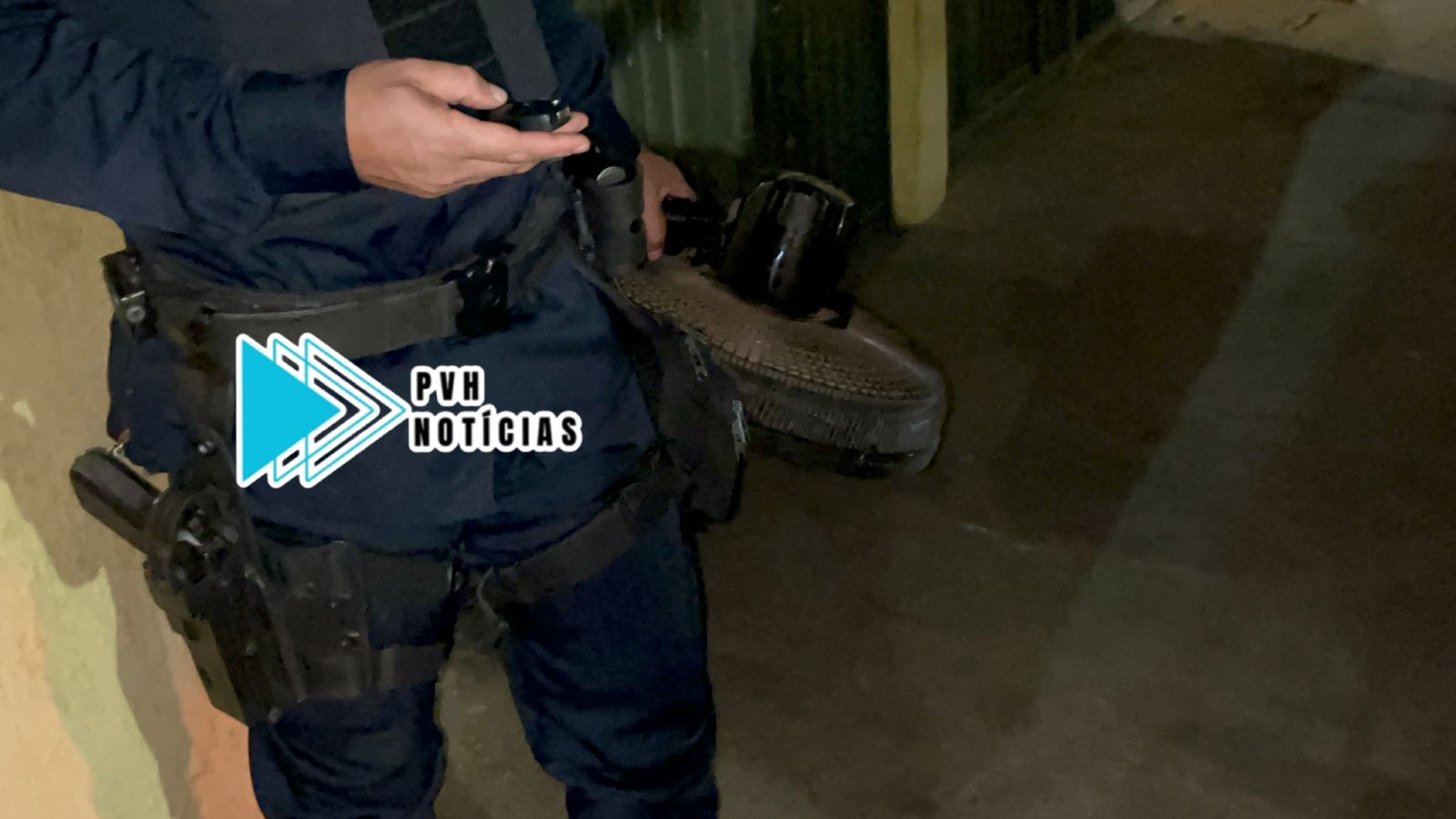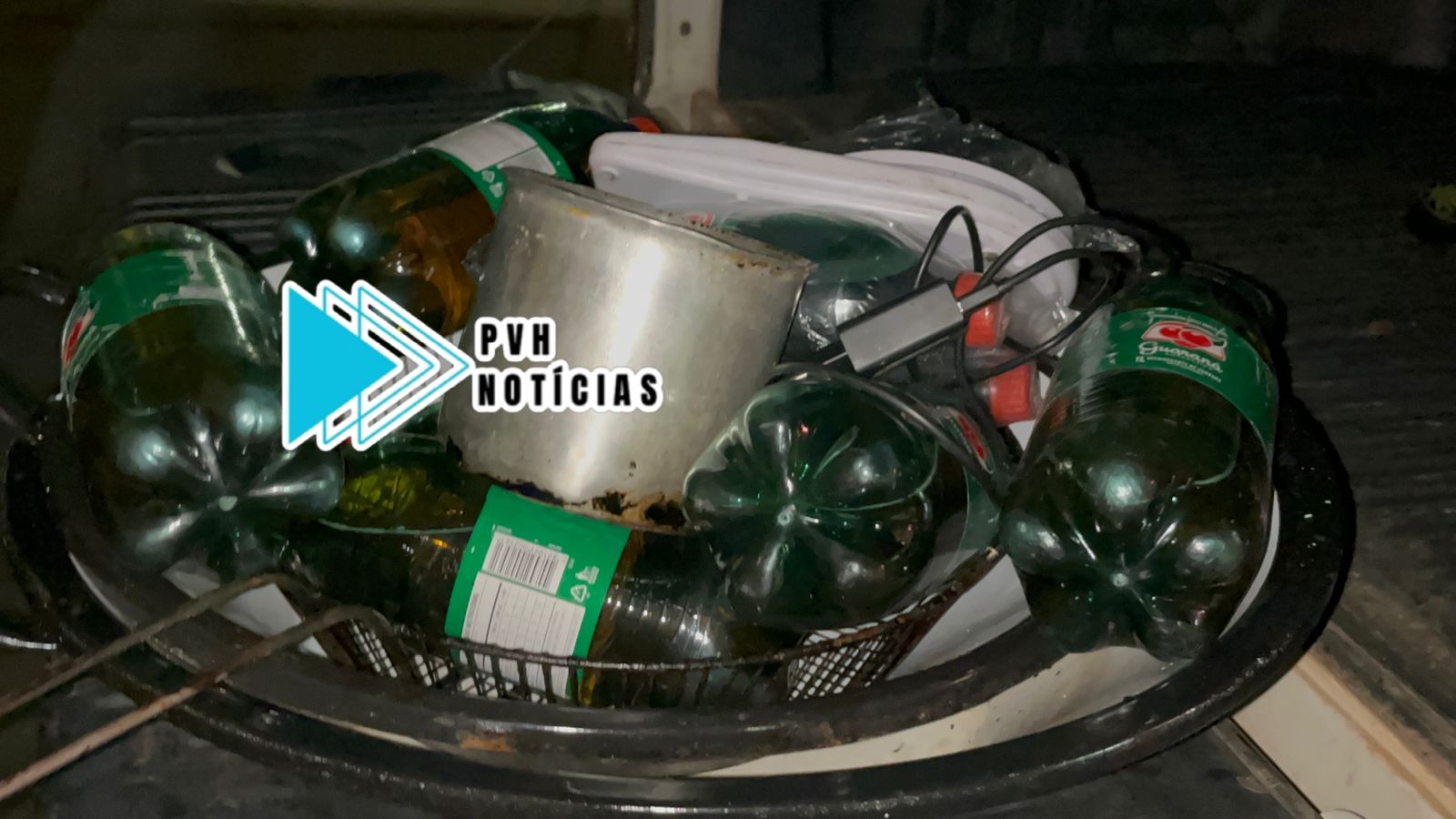 Testemunhas viram o suspeito saindo do estabelecimento comercial, carregando dois ventiladores, e várias garrafas de refrigerante, em seguida o criminoso fugiu ao perceber que era observado, e a PM havia sido chamada.