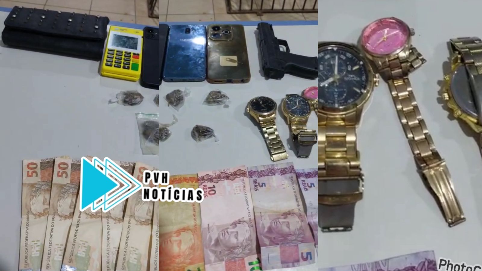 Após receber denúncias a equipe conseguiu abordar o casal suspeito e localizar maconha, dinheiro, celulares de procedência duvidosa e um simulacro.