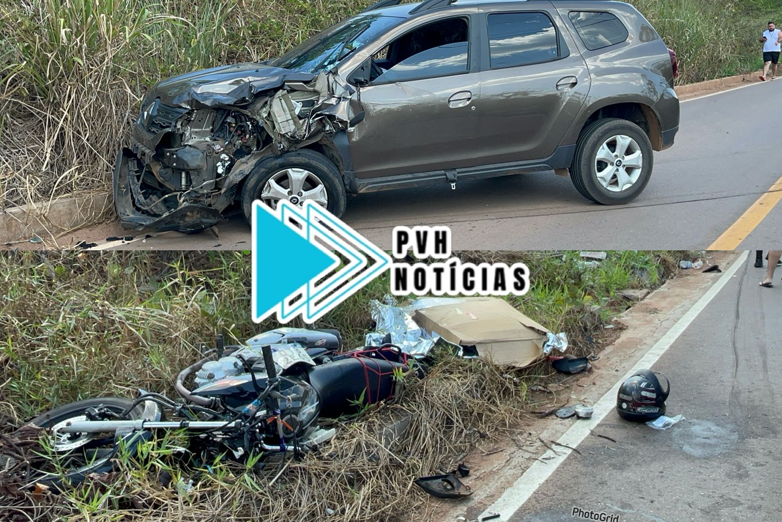 Na ocasião o suspeito seguia em direção a BR-364 quando invadiu a pista contrária e bateu de frente com a moto ocupada pelo casal e uma criança de aproximadamente 4 anos, depois o motorista fugiu correndo por dentro do mato.