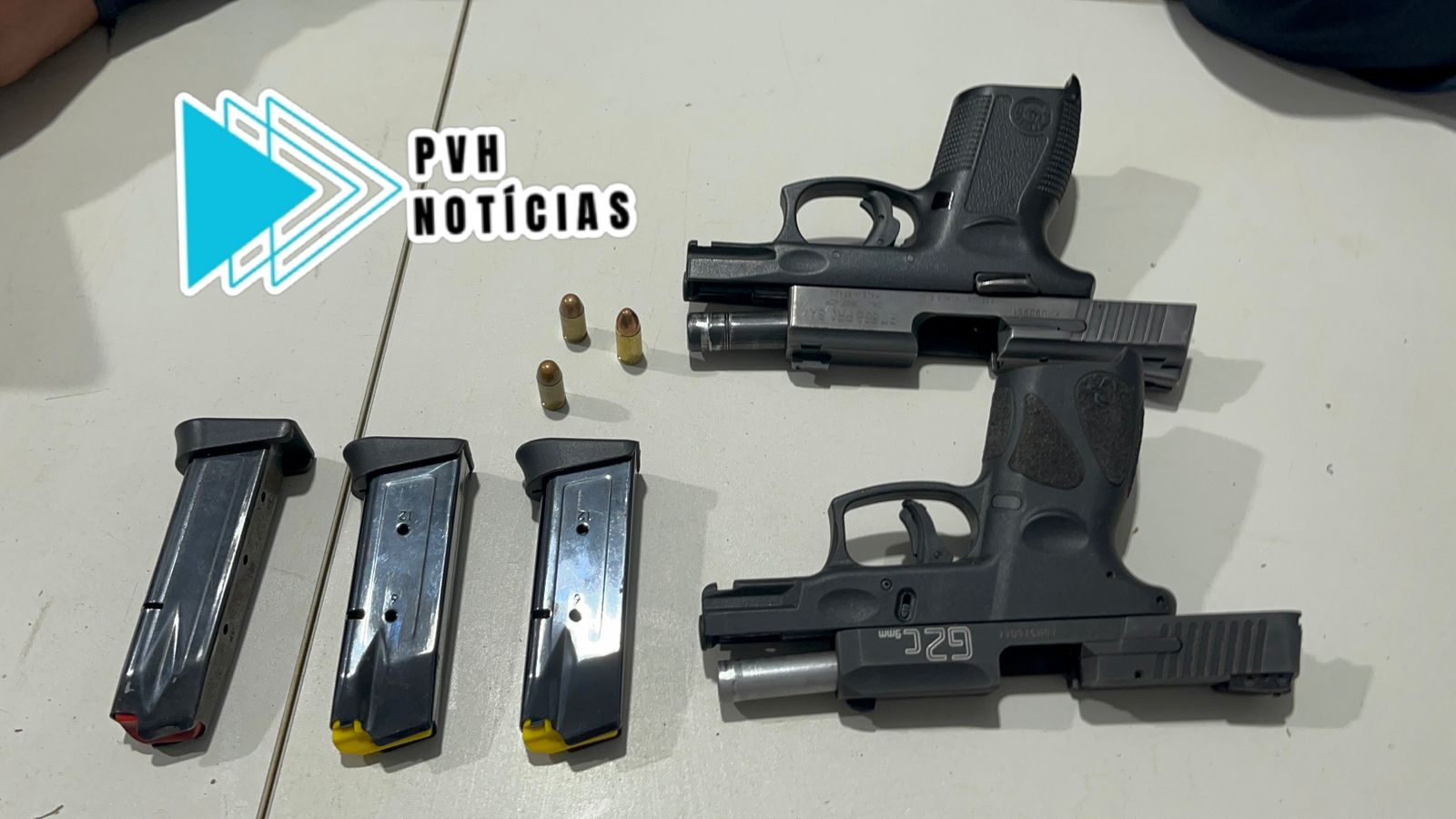 Com eles foram apreendidas duas pistolas calibre .40 e 9mm municiadas e o carro que foram encaminhadas ao Departamento de Flagrantes.