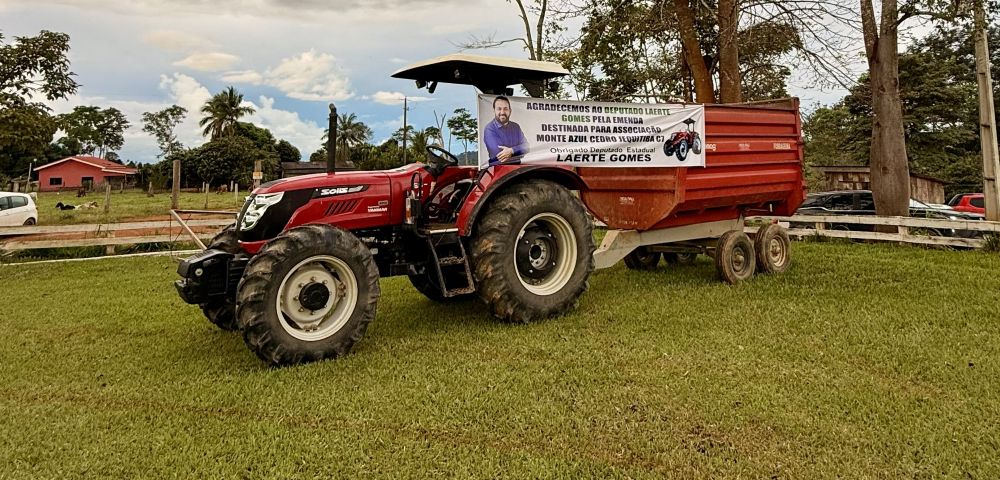 Nesta quarta-feira (23), o deputado estadual Laerte Gomes (PSD) realizou a entrega de um trator para a Associação Monte Azul, localizada no distrito do 5º BEC, na linha C7 Cedro Jequitibá. A ação atende a uma solicitação da vereadora Jeane e do vice-prefeito Reginaldo do Esporte, reforçando o compromisso com o fortalecimento da produção rural na região.