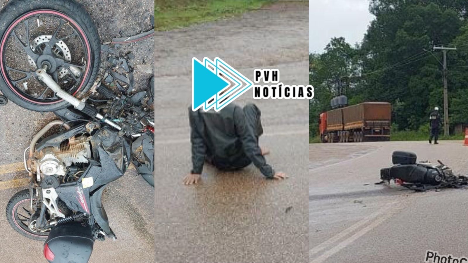 Por muito pouco um acidente entre moto e carreta não termina de forma trágica na manhã deste sábado (17), na Estrada da Penal, bairro Aponiã em Porto Velho.