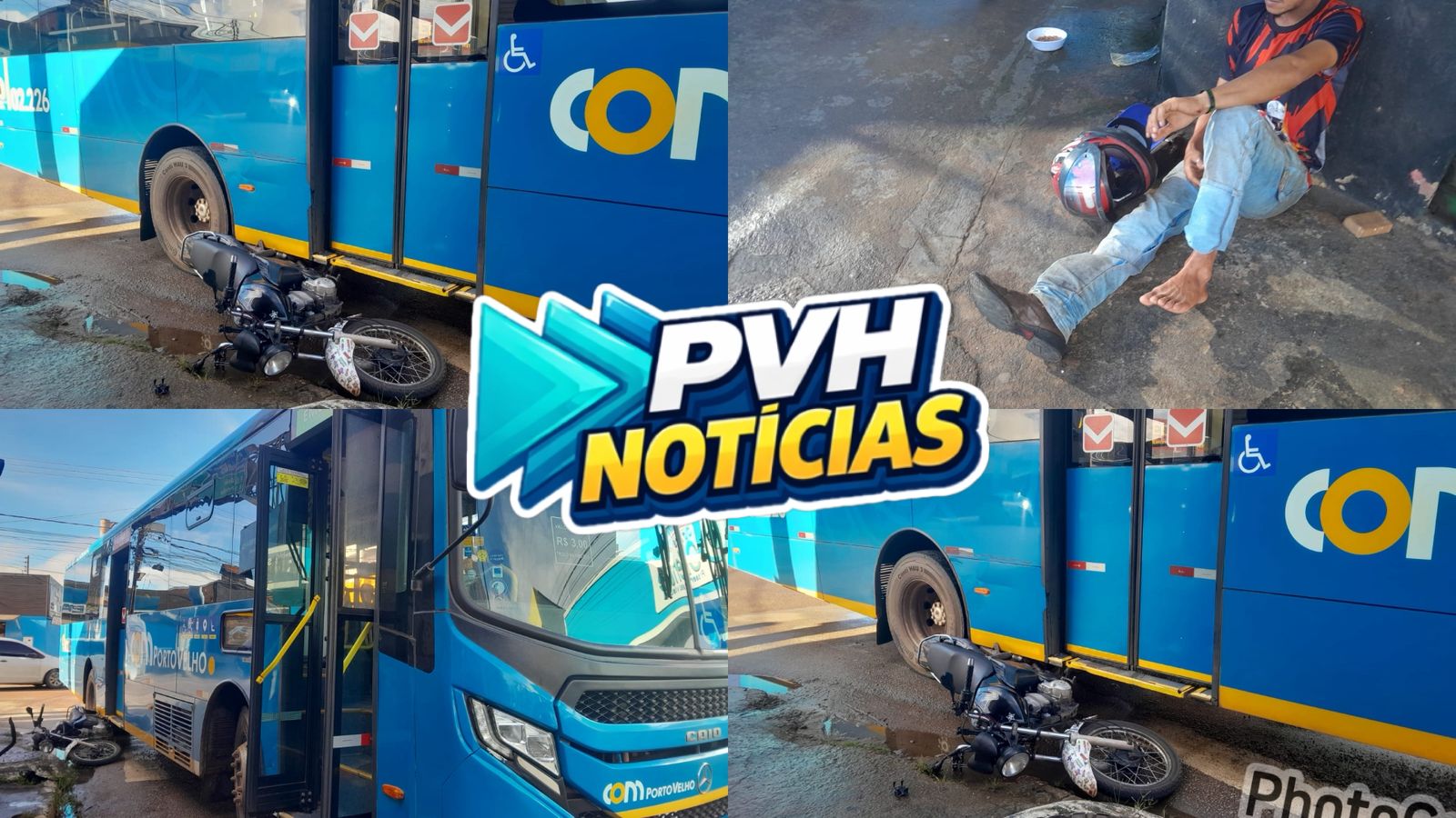 Um acidente de trânsito envolvendo um ônibus e uma motocicleta deixou um homem ferido na manhã desta sexta-feira, no cruzamento da Avenida José Amador dos Reis com a Rua Plácido de Castro, no bairro JK, em Porto Velho.
