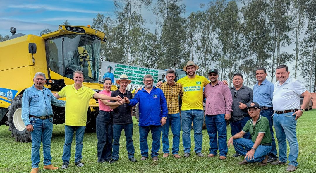 O projeto também conta com a parceria do senador Jaime Bagattoli (PL), que viabilizou a entrega de uma colheitadeira para atender às demandas das associações rurais do município.