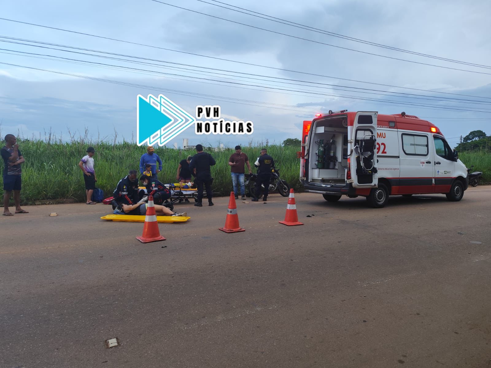 Um grave acidente entre moto e bike no final da tarde desta sexta-feira (24), deixou mãe e criança feridas na Estrada dos Japoneses, em frente ao Kart Bar, bairro Aeroclube, zona sul de Porto Velho.