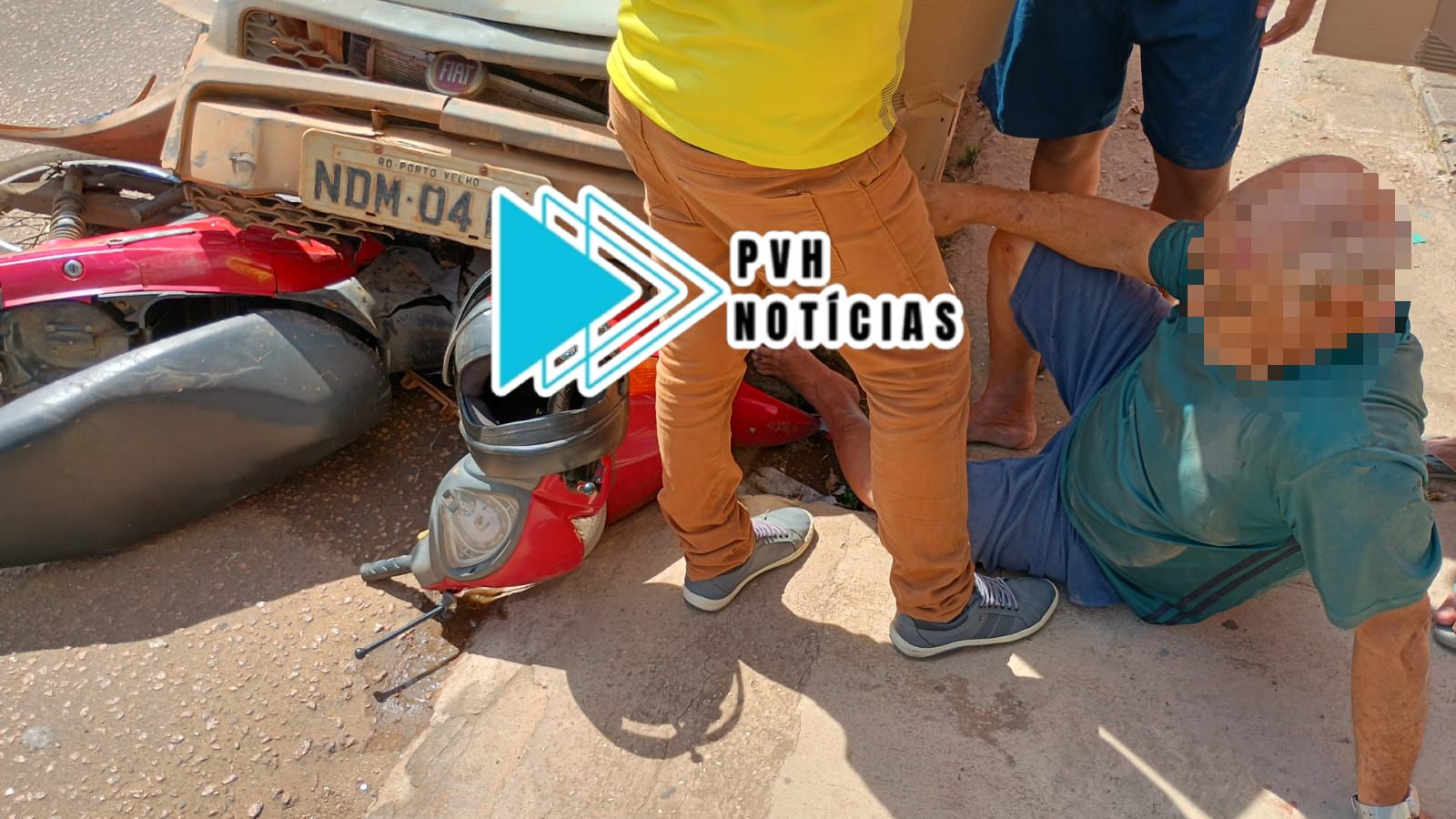 NA CALAMA: Moto é arrastada por carro e idoso fica ferido em grave acidente