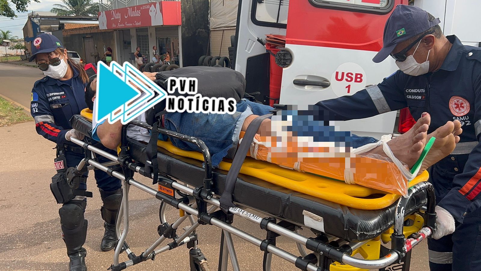 O piloto da moto, que teve uma fratura exposta na perna e outras lesões pelo corpo, foi socorrido em estado grave pelo Samu ao Hospital João Paulo II.