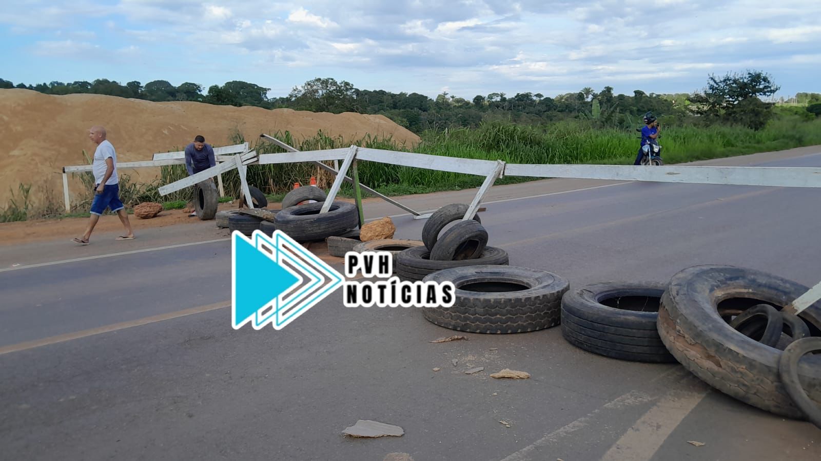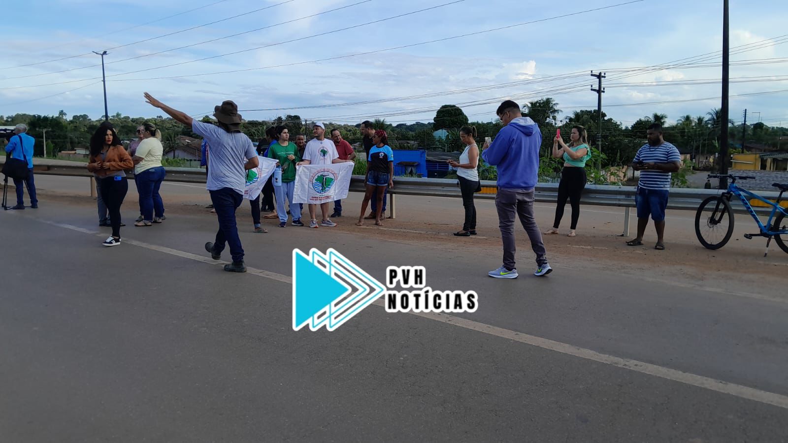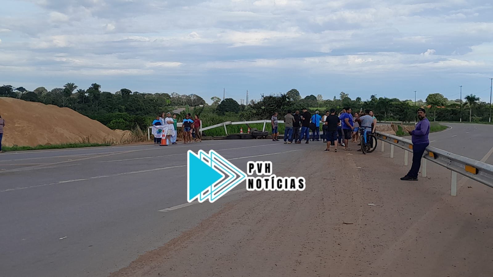 A manifestação ocorre próximo a área onde o DNIT implantou o “pare e siga”, por conta das obras na ponte sobre o Rio Candeias. Os manifestantes dizem que as rachaduras na estrutura da ponte e também nas residências, estejam sendo causadas por conta do areal que fica próximo.