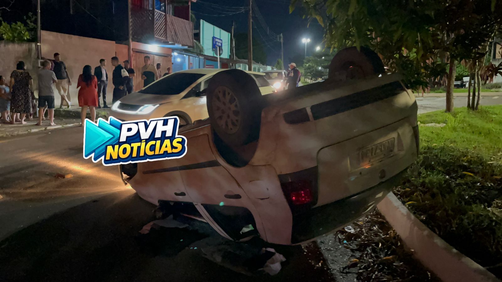 Testemunhas contaram que o carro modelo Kwid (aplicativo), seguia a frente do Palio, quando o condutor freou bruscamente causando a batida traseira e o capotamento, deixando o outro motorista ferido sem gravidade.
