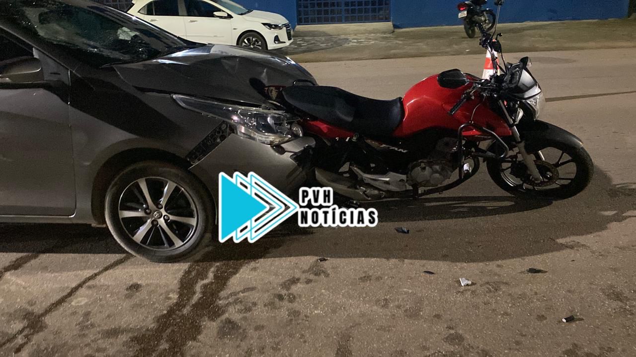 O acidente envolvendo carro e moto ocorreu na madrugada desta segunda-feira (12), na Renato Peres com Avenida Amazonas, bairro Agenor de Carvalho em Porto Velho.