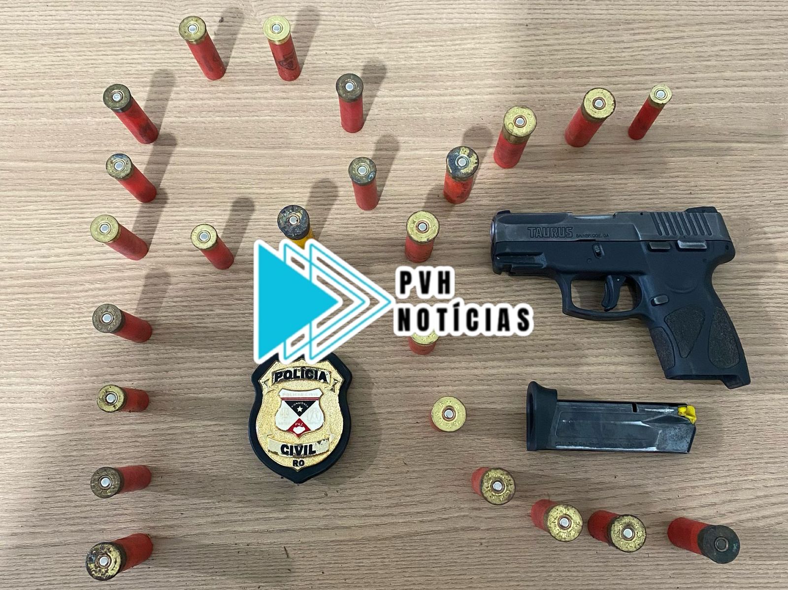 O criminoso que estava sendo procurado, foi flagrado armado com pistola e munições no Ramal do Laje, em Nova Mamoré.