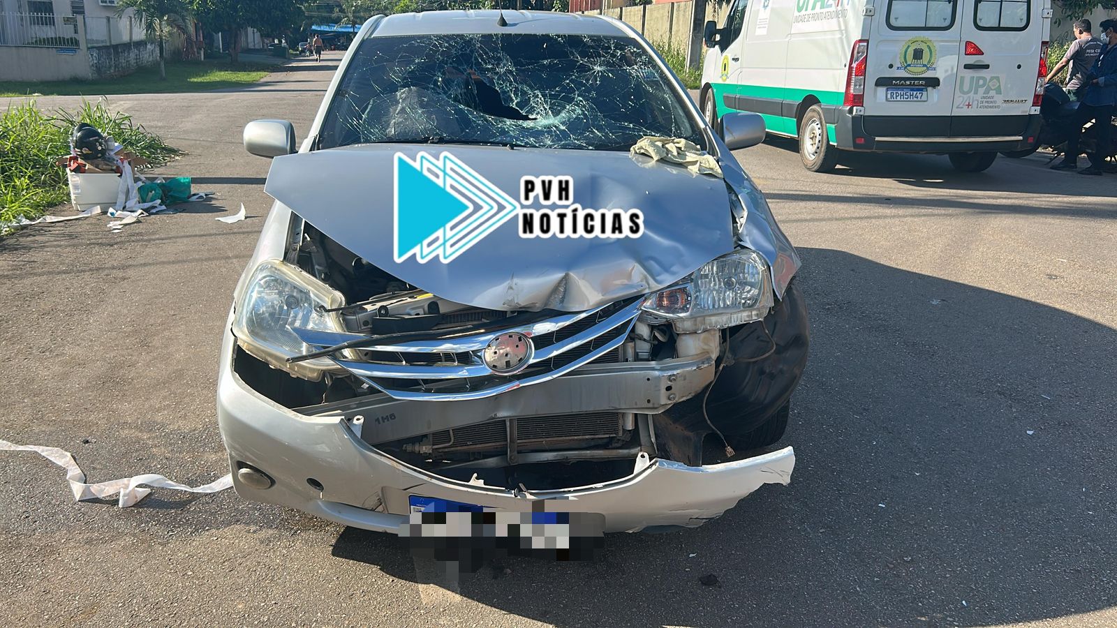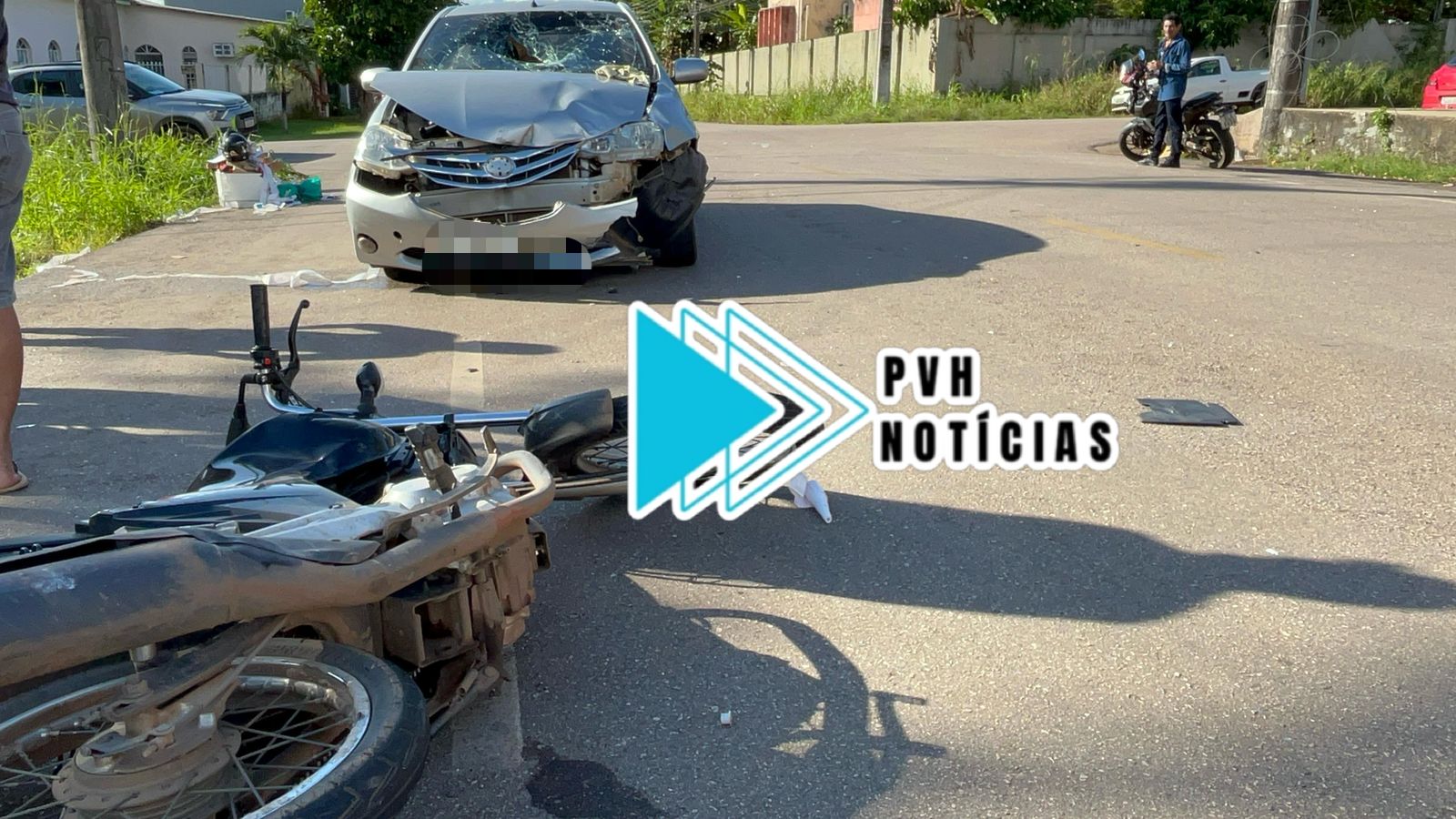 Uma mulher ficou em estado grave após colisão entre carro e moto no cruzamento das Ruas Rui Barbosa com José Camacho, bairro Arigolândia, centro de Porto Velho na tarde desta quinta-feira (17).