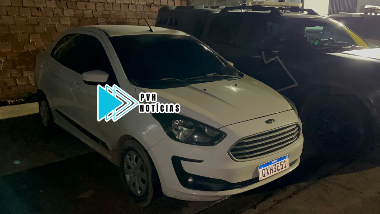 Segundo a PM, a guarnição em patrulhamento avistou um carro modelo Ford Ka parado em local suspeito com dois ocupantes e fez a abordagem.