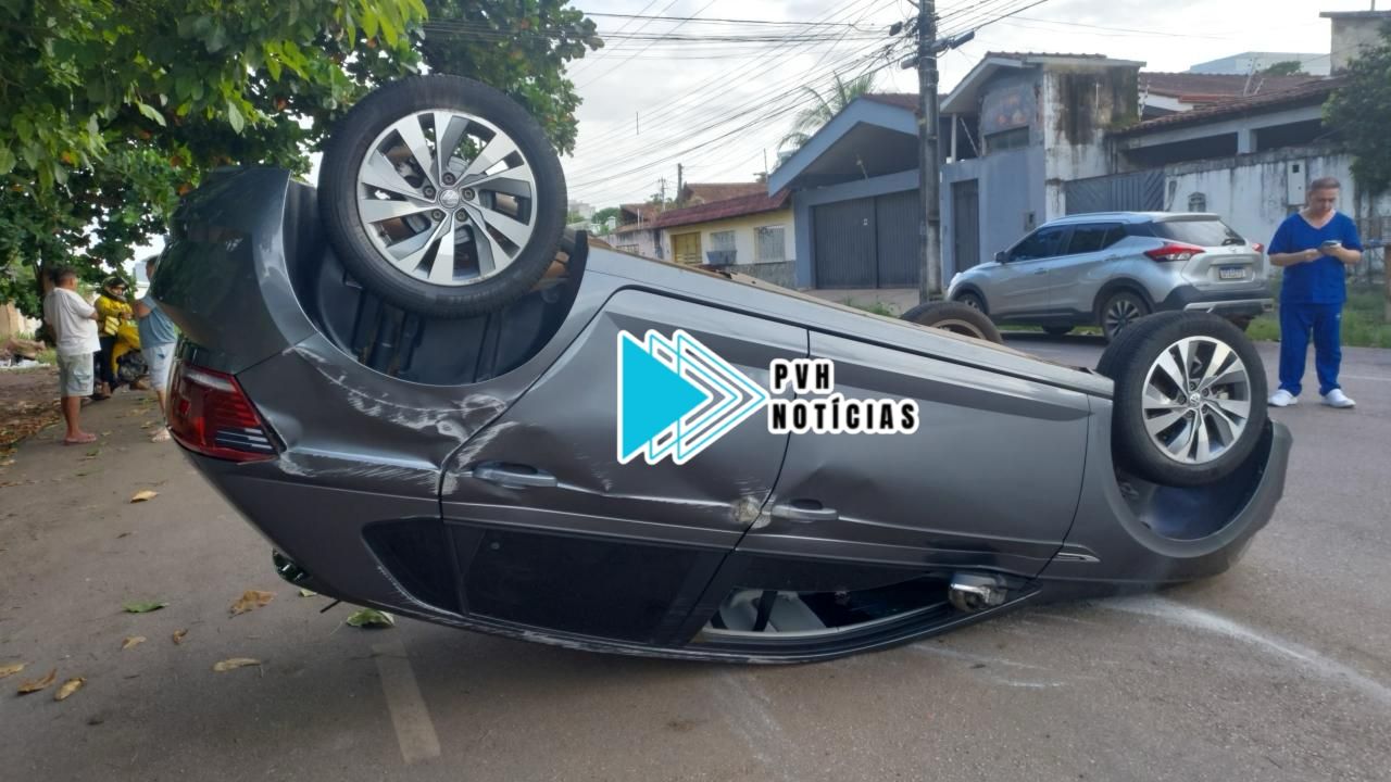 Uma forte batida neste domingo (23), acabou resultando no capotamento de um carro modelo Polo no cruzamento da Avenida Calama com Rui Barbosa, centro da capital.