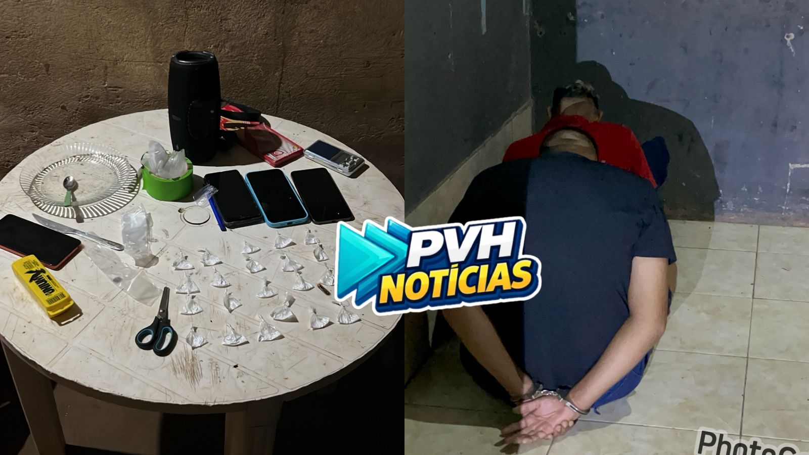 A dupla foi flagrada com drogas em uma boca de fumo na Rua Anápolis, bairro Jardim Santana, zona leste de Porto Velho.