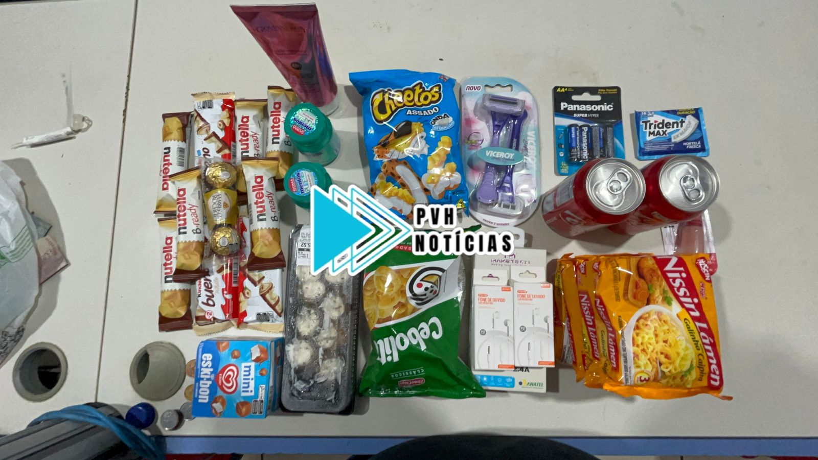 As suspeitas pegaram vários produtos como chocolates, fones de ouvido, salgadinhos, mentos entre outros e colocaram em uma mochila, depois foram abordadas na saída.
