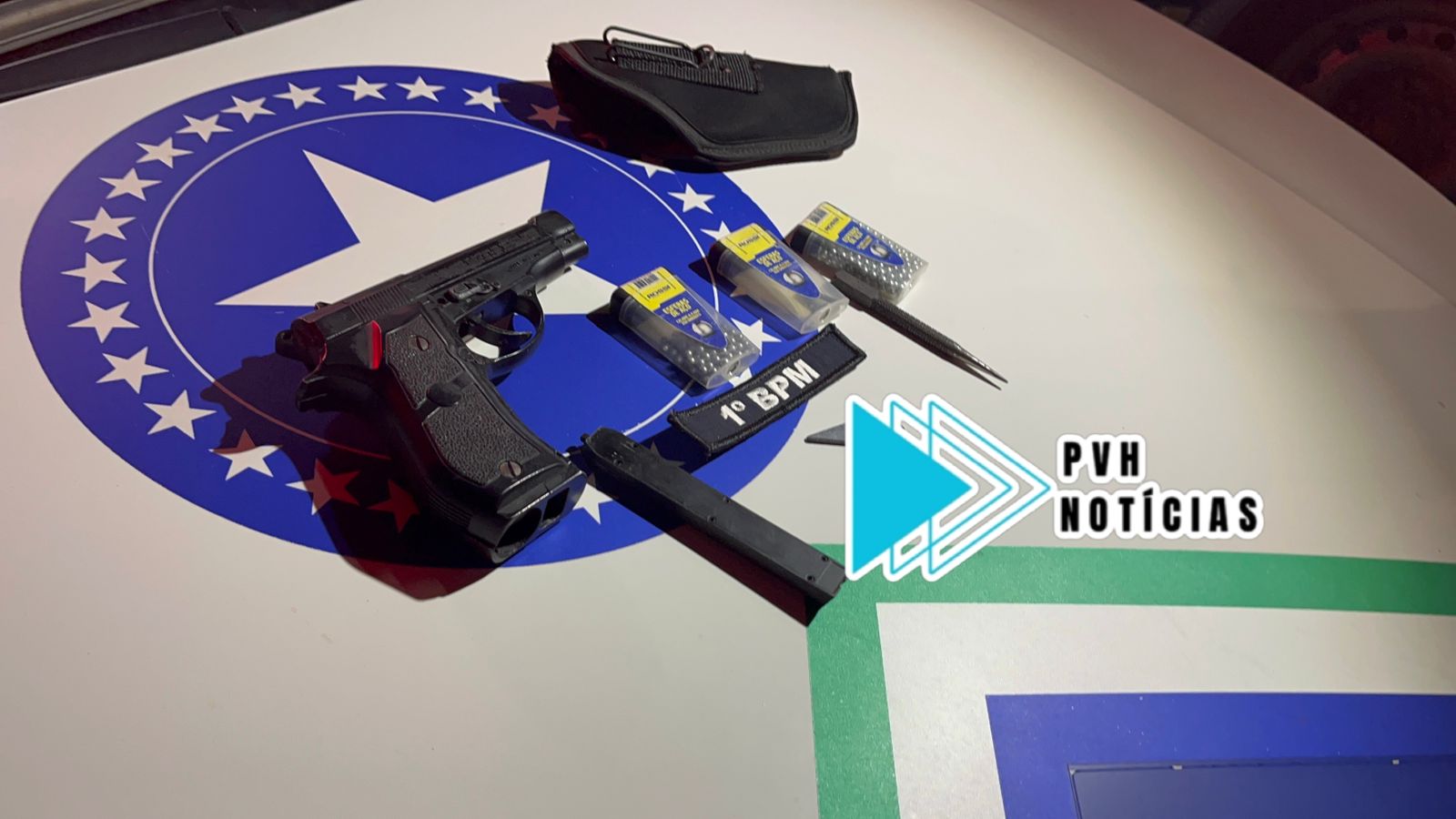 Durante abordagem no suspeito, a guarnição comandada pelo sgt Rocha localizou uma pistola a gás com diversas munições de chumbo. O adolescente disse que a arma pertencia ao pai, e havia esquecido de tirar de dentro da mochila.